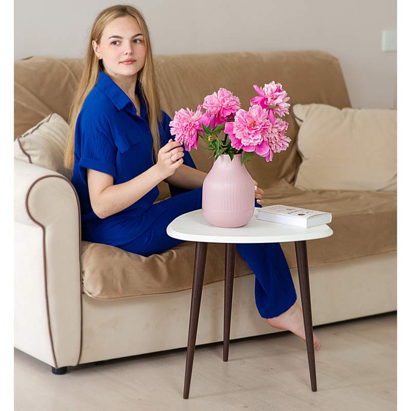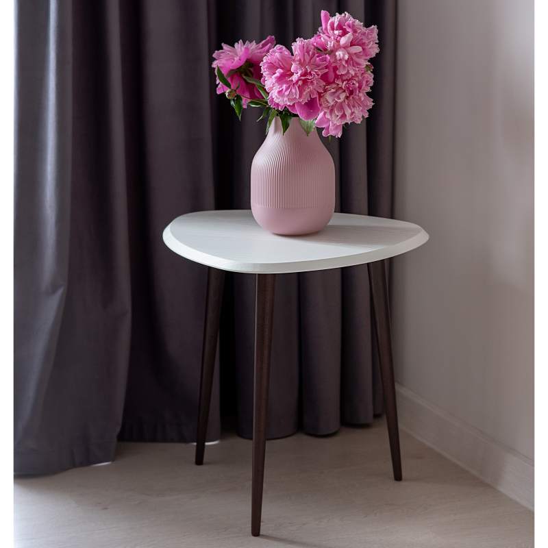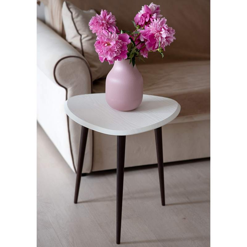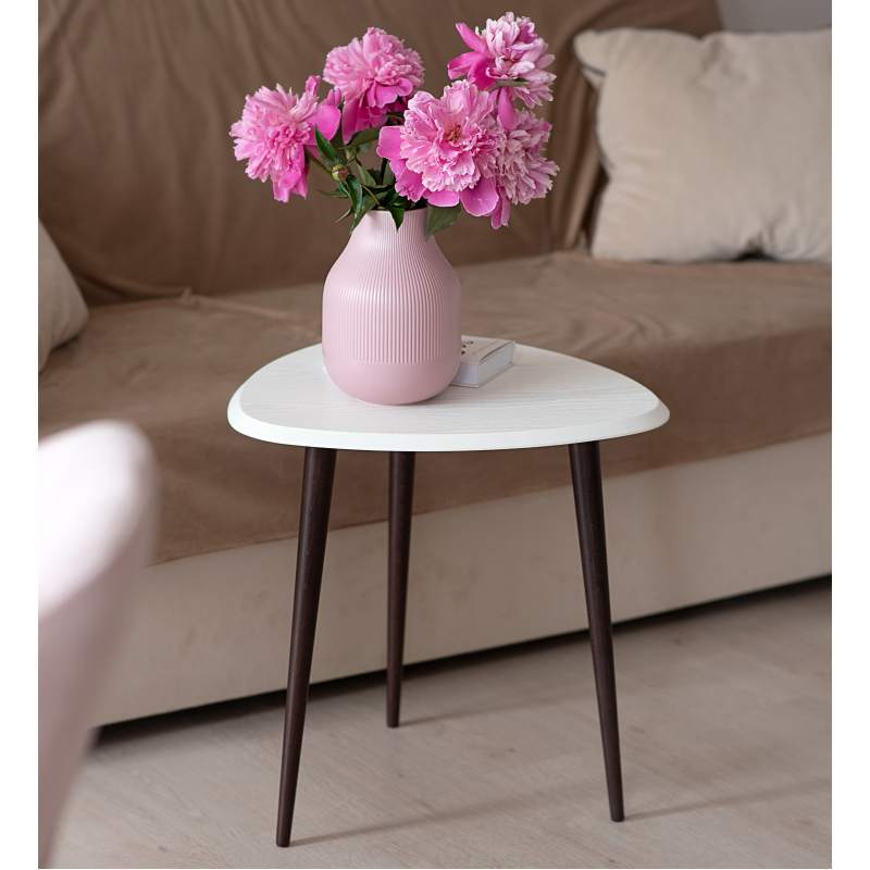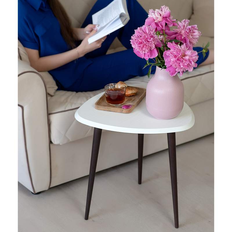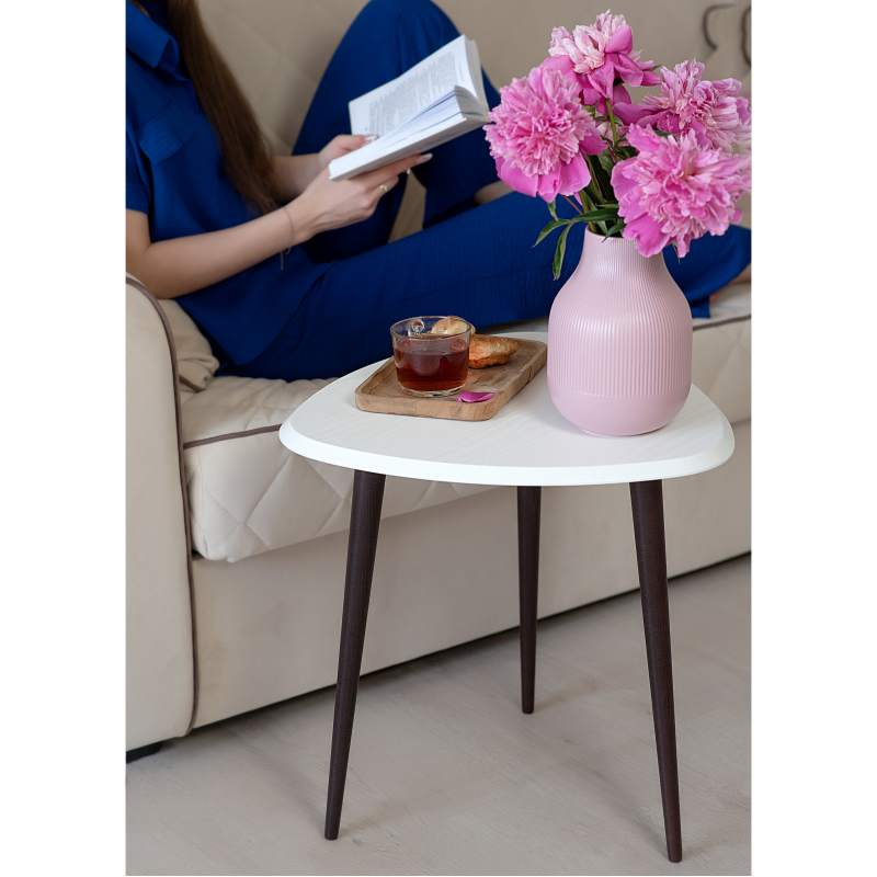 Столик для любителей всего нового. Мягкость скругленных углов треугольной столешницы не просто смотрится сверх современно, но и порождает внутреннее чувство безопасности; фаска по периметру столешницы – дань современным тенденциям и гигиене интерьера; элегантные точеные ножки из массива бука – классика стиля; современные цвета отделки – соответствие сегодняшнему дню. Столик смотрится настолько элегантно, что все ваши гости непременно обратят на него свое внимание и оценят ваш вкус. Если к этому добавить минимальный бюджет, простоту процесса приобретения, то побаловать себя такой вещицей и осовременить домашнюю обстановку становится очень просто.___