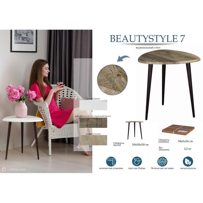 Журнальные столы серии «BeautyStyle» отлично зарекомендовали себя на маркетплейсах и в интернет-торговле за счет доступных цен, понятных конструктивных решений, разнообразия цветового оформления, удобства совершения покупки, простоты доставки и сборки. В салонах эти столики служат отличным инструментом дополнительных продаж.