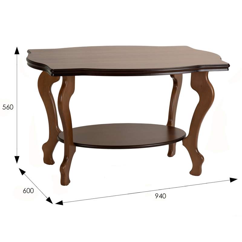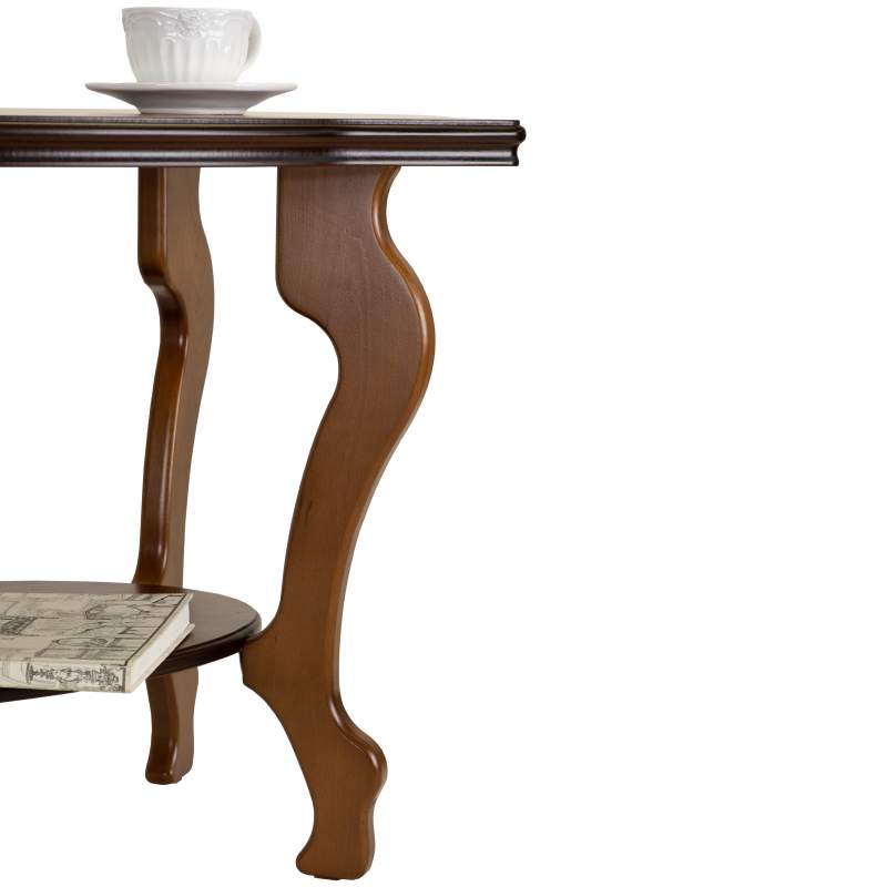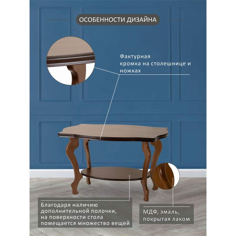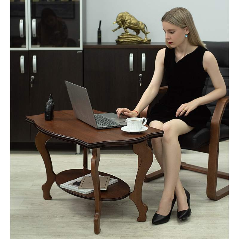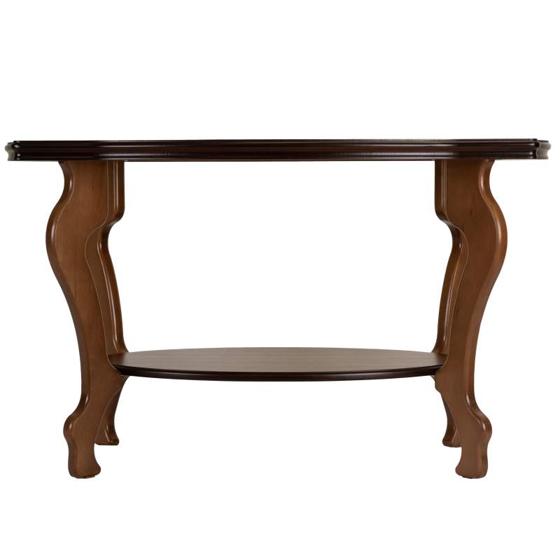 Журнальный столик Берже 1 выполнен в классическом стиле. Его ножки и рельефная кромка столешницы изящно изогнуты. Модель прекрасно дополнит традиционный дизайн дома или офиса.
