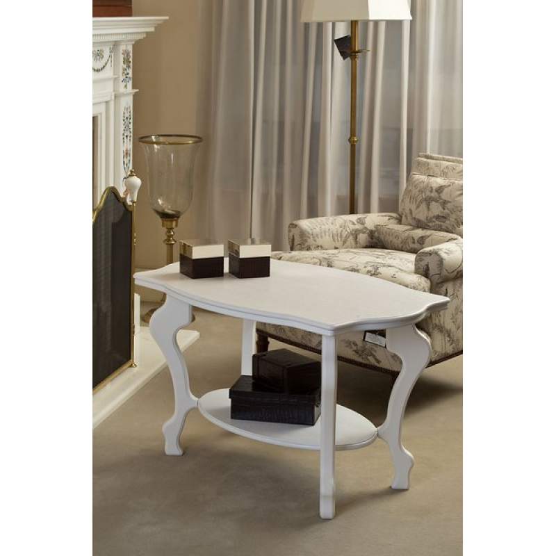 Журнальный столик Берже 1 выполнен в классическом стиле. Его ножки и рельефная кромка столешницы изящно изогнуты. Модель прекрасно дополнит традиционный дизайн дома или офиса.
