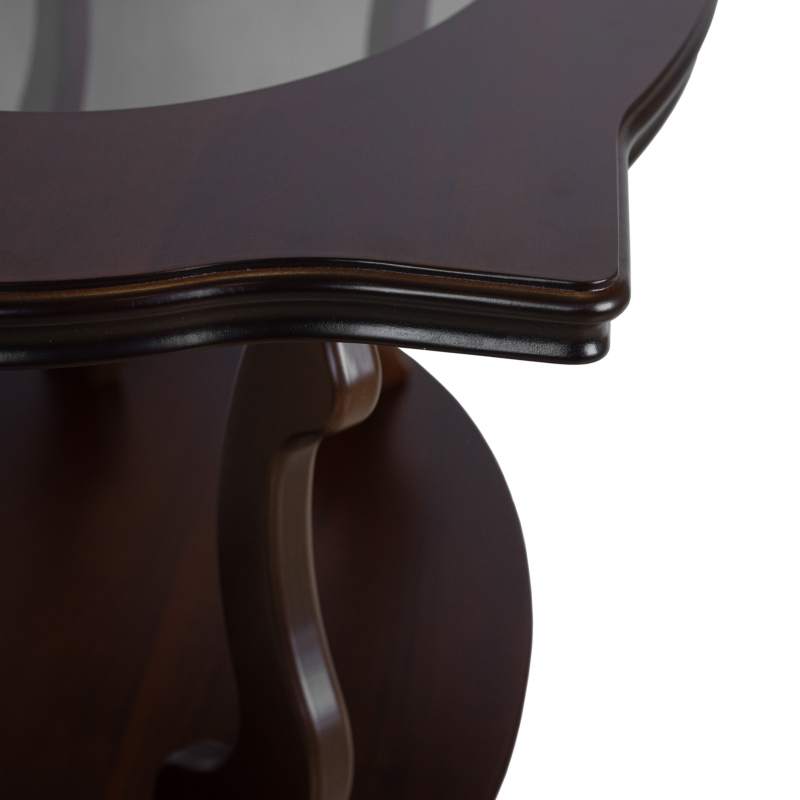 Кромка столешницы имеет красивую форму, тонированное стекло