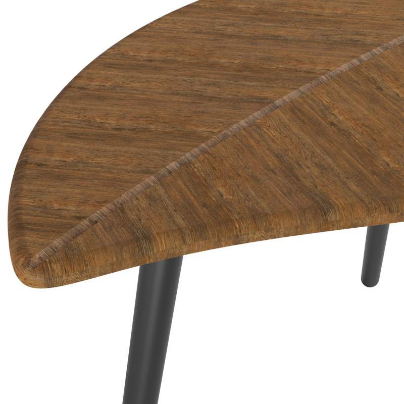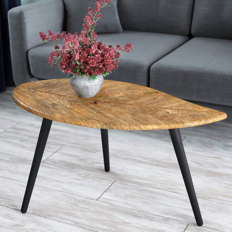 Особенностью журнального стола "Берли"является оригинальное сочетание фрезеровки столешницы в форме листа дерева и текстуры декоративного покрытия. Опоры выполнены из дерева.___