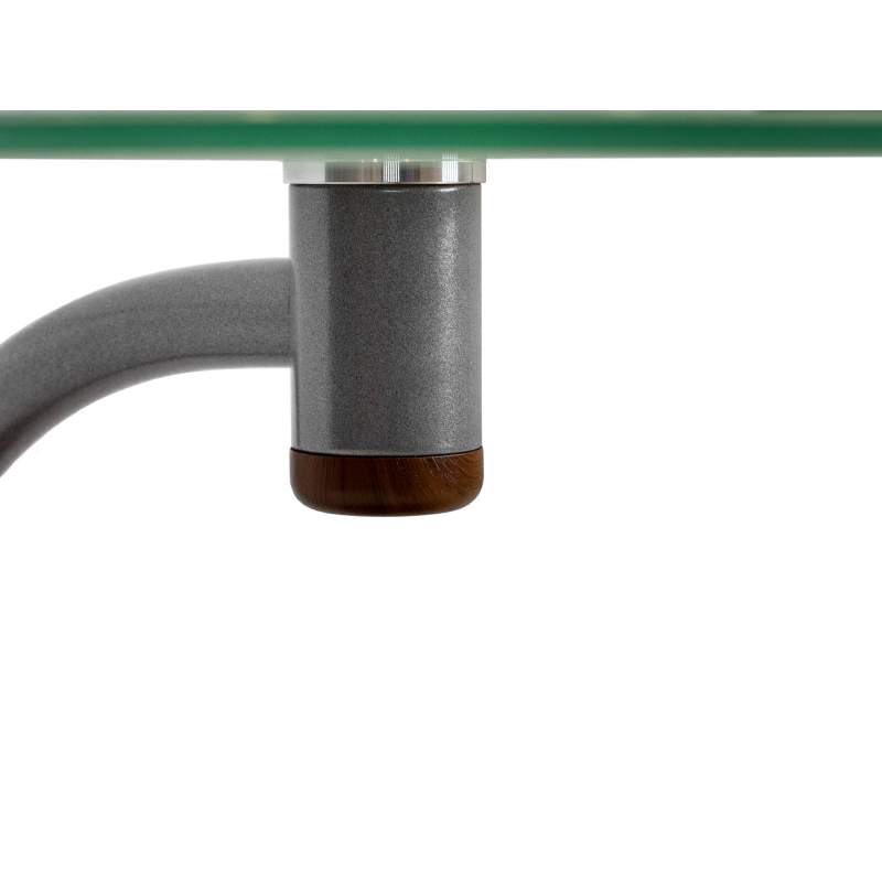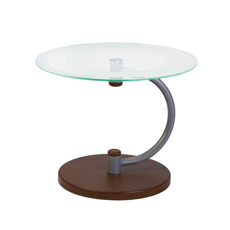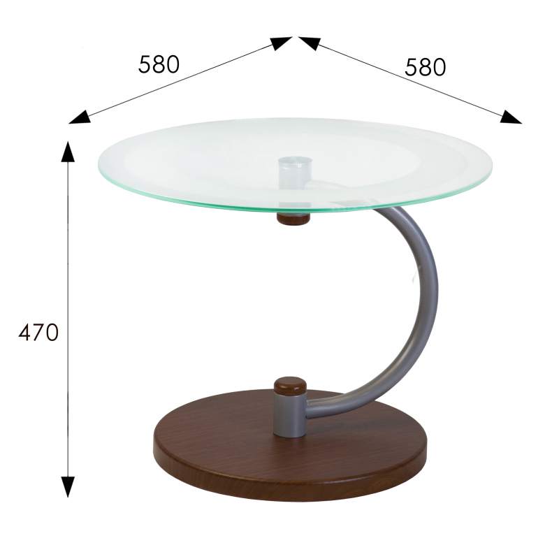 Небольшой, но массивный – вес 12кг! и устойчивый журнальный стол со стеклянной столешницей диаметром 58см, мощным основанием диаметром 42см из лмдф и опорой в виде полукруга идеально подойдет для оформления зон отдыха офисных и общественных помещений, современных частных интерьеров.
