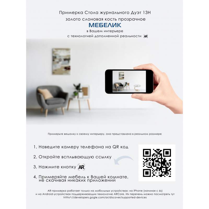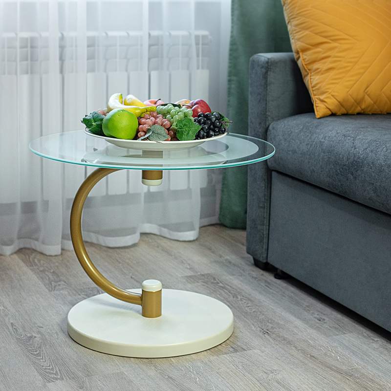 Стол журнальный Дуэт 13Н золото/слоновая кость/прозрачное