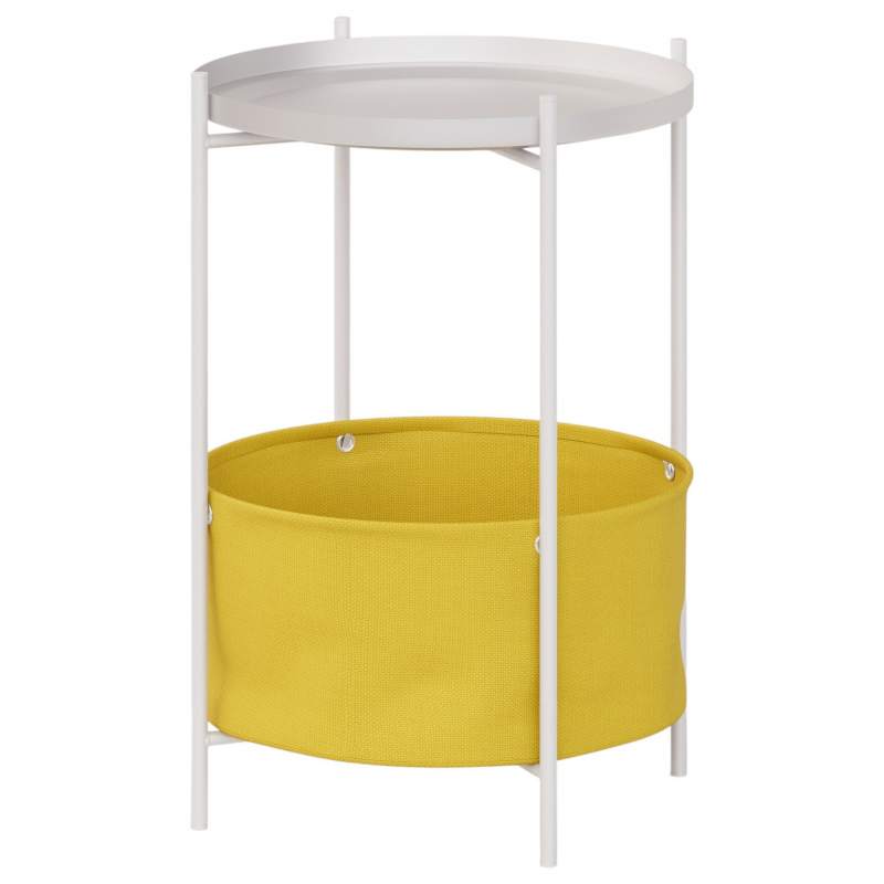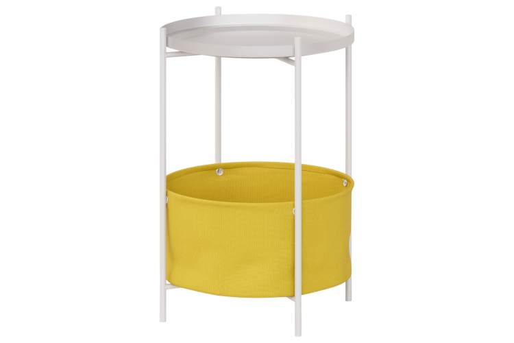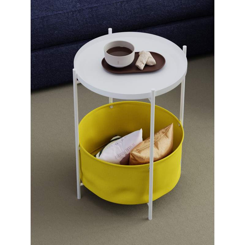 Журнальный столик Элдей – это удобный и стильный предмет мебели для гостиной, спальни или балкона. Металлический каркас обеспечивает прочность, корзина из ткани – практичное хранение пледов, книг и мелочей. Съемный поднос- столешница с бортиками удобен для сервировки и легко используется отдельно. Воплотите в реальность любые интерьерные решения вместе с универсальным столиком.