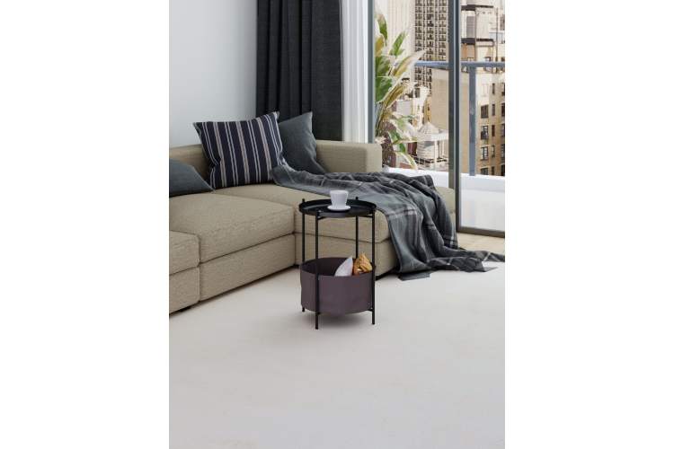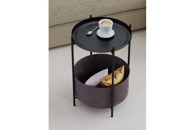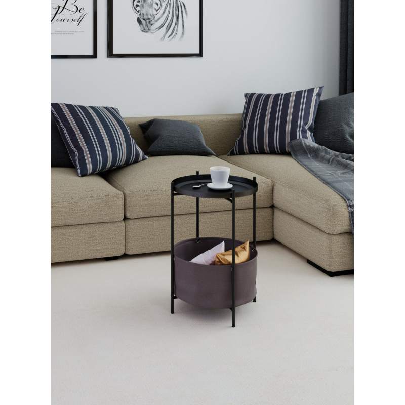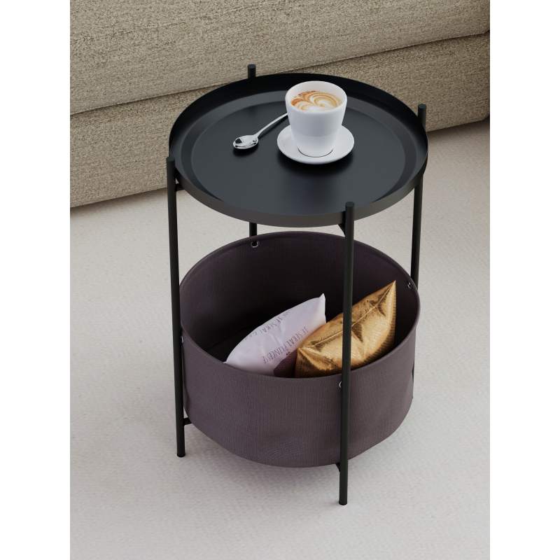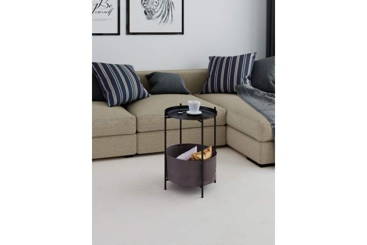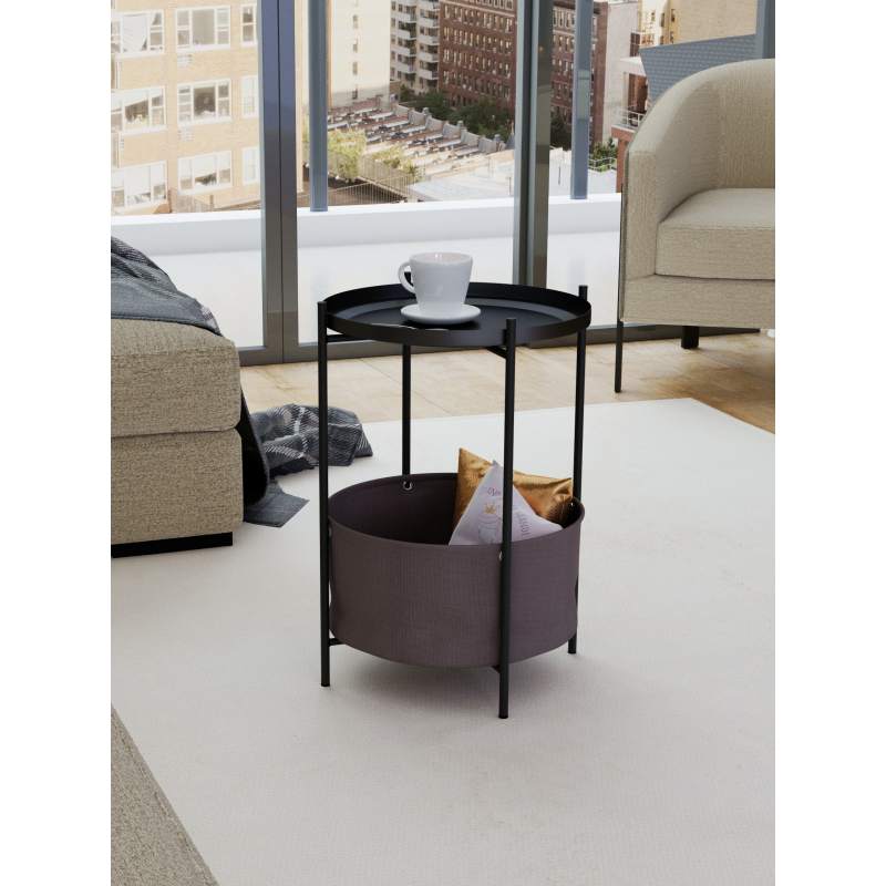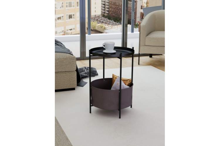Журнальный столик Элдей – это удобный и стильный предмет мебели для гостиной, спальни или балкона. Металлический каркас обеспечивает прочность, корзина из ткани – практичное хранение пледов, книг и мелочей. Съемный поднос- столешница с бортиками удобен для сервировки и легко используется отдельно. Воплотите в реальность любые интерьерные решения вместе с универсальным столиком.