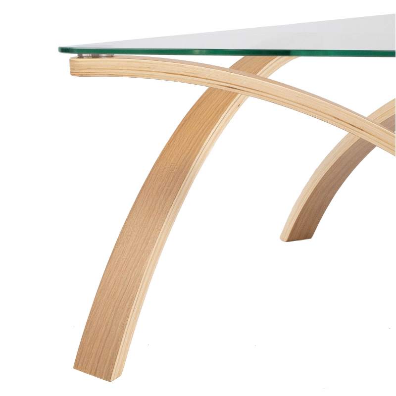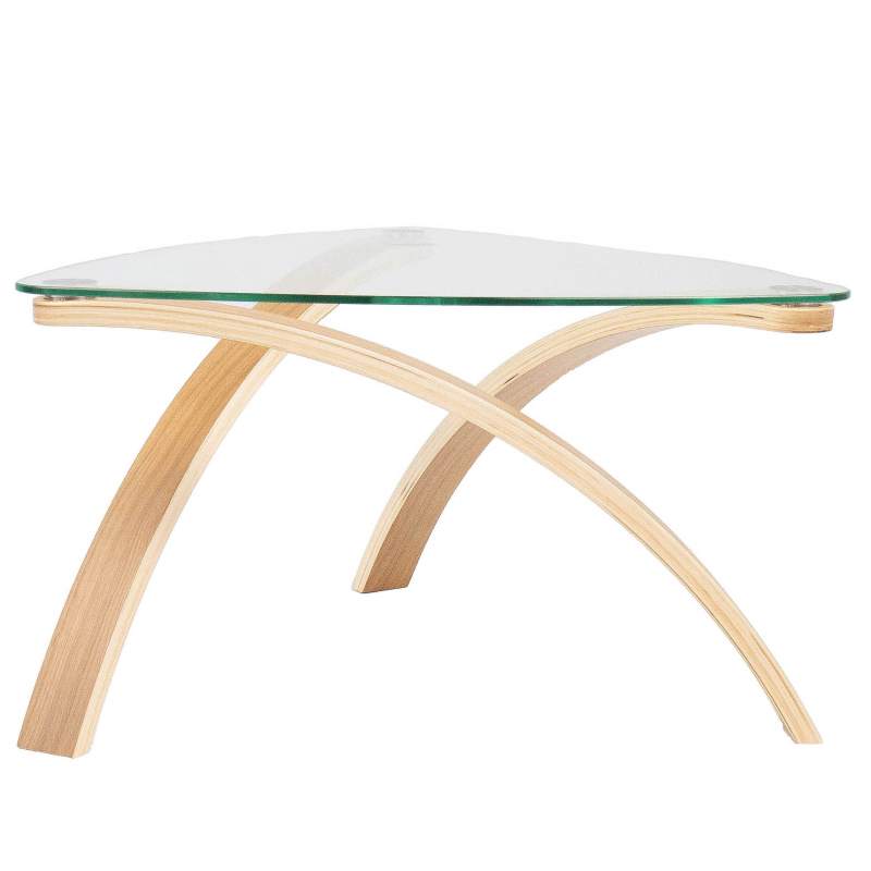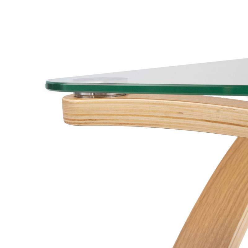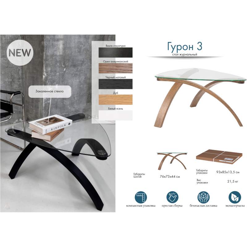 Журнальный стол Гурон 3 – это невероятное открытие дизайна. Главная особенность стола – уникальное подстолье из дугообразных опор, выполненных из гнутоклееного шпона дуба. Привлекательности добавляет столешница шириной 76см из закалённого стекла. Её треугольная форма с закруглёнными краями моментально производит впечатление. Благодаря дизайну стол хорошо будет смотреться в самых разных стилях интерьера и станет не просто интересным украшением, а ещё и практичным помощником. Широкая столешница позволит держать под рукой все полезные вещи. На ваш выбор представлены целых пять вариантов расцветки, каждая из которых по-новому раскроет ваш интерьер.