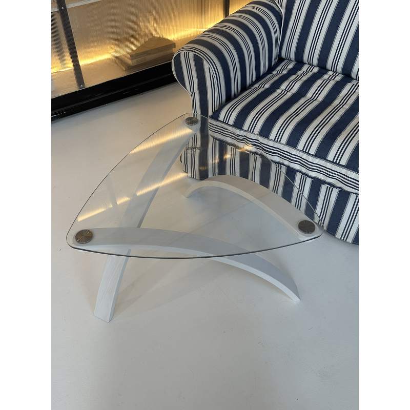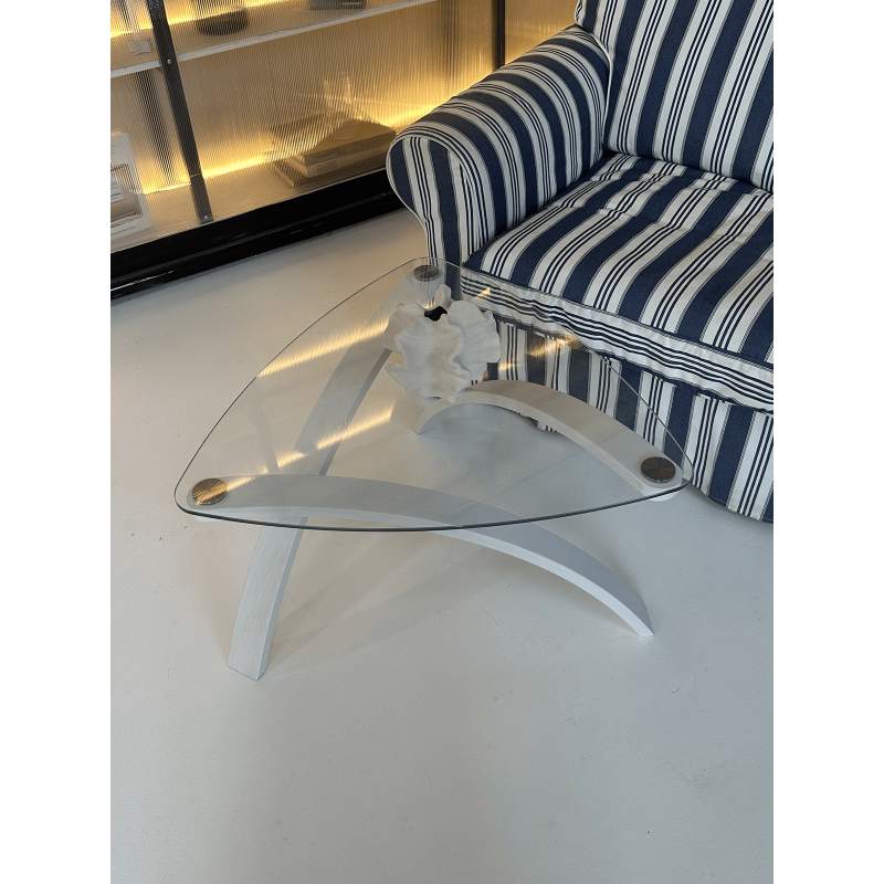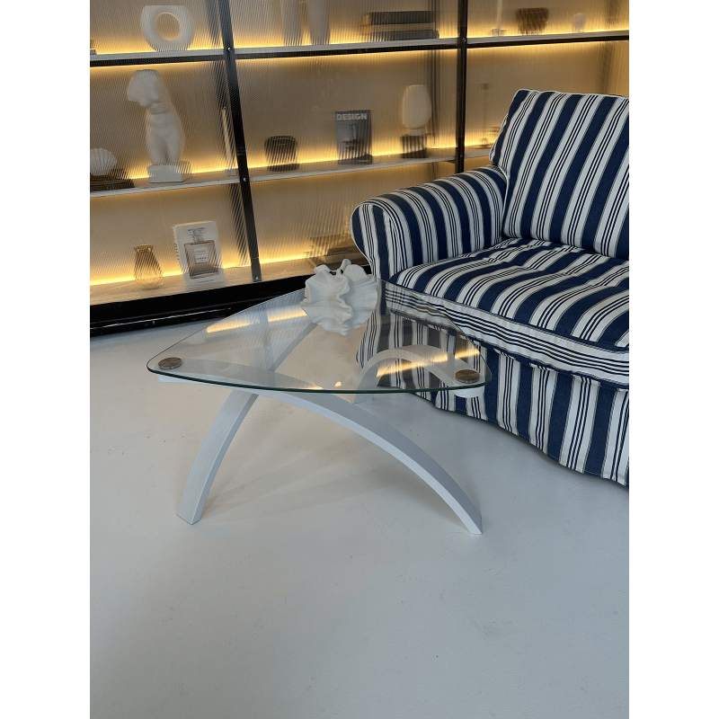 Журнальный стол Гурон 3 – это невероятное открытие дизайна. Главная особенность стола – уникальное подстолье из дугообразных опор, выполненных из гнутоклееного шпона ясеня. Привлекательности добавляет столешница шириной 76см из закалённого стекла. Её треугольная форма с закруглёнными краями моментально производит впечатление. Благодаря дизайну стол хорошо будет смотреться в самых разных стилях интерьера и станет не просто интересным украшением, а ещё и практичным помощником. Широкая столешница позволит держать под рукой все полезные вещи. Модель в данном сочетании материалов представлена в одной расцветке – белый ясень.