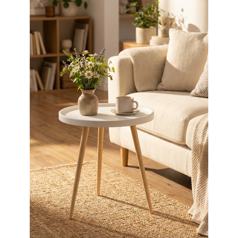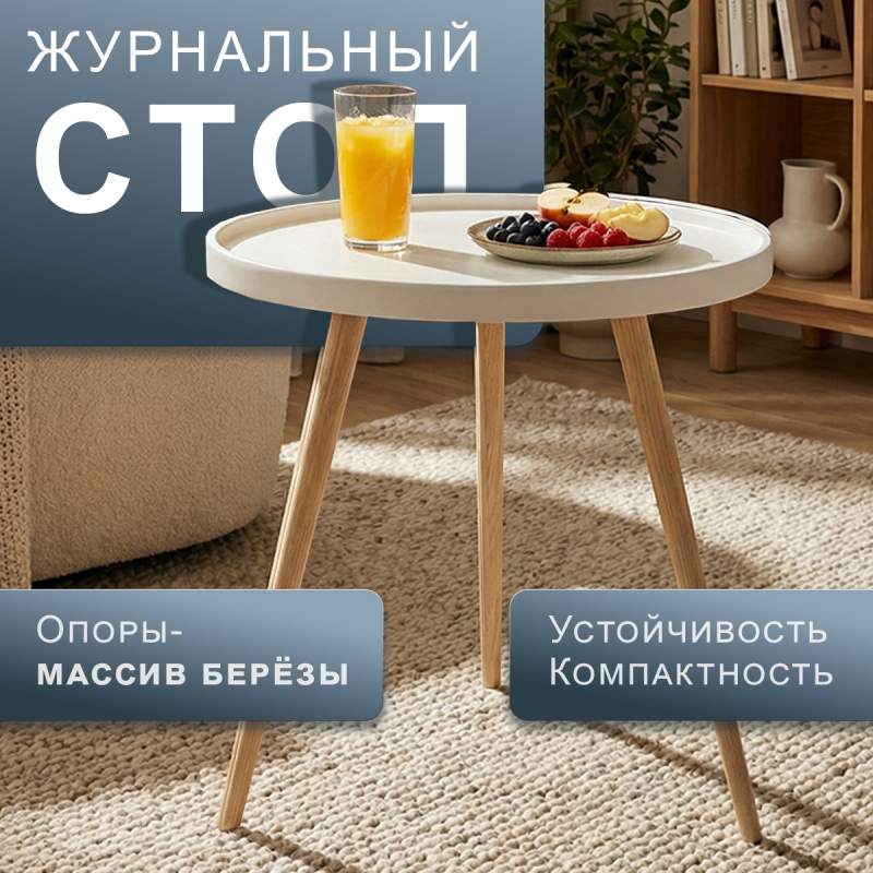 Журнальный стол Келли станет тем самым акцентом, который преобразит ваше пространство! Безупречное качество воплощено в каждой детали: столешница из МДФ толщиной 22 мм радует глаз гладкой поверхностью и приятной текстурой. Скруглённые края обеспечивают безопасность, а нейтральный оттенок гармонично впишется в любой дизайн. Изящная конструкция на ножках из массива берёзы создаёт атмосферу уюта и тепла. Натуральное дерево в сочетании с современным дизайном делает стол по-настоящему уникальным — он не только красив, но и невероятно устойчив.