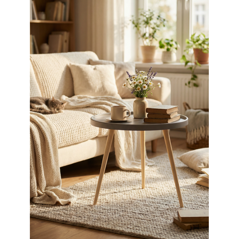 Журнальный стол Келли станет тем самым акцентом, который преобразит ваше пространство! Безупречное качество воплощено в каждой детали: столешница из МДФ толщиной 22 мм радует глаз гладкой поверхностью и приятной текстурой. Скруглённые края обеспечивают безопасность, а нейтральный оттенок гармонично впишется в любой дизайн. Изящная конструкция на ножках из массива берёзы создаёт атмосферу уюта и тепла. Натуральное дерево в сочетании с современным дизайном делает стол по-настоящему уникальным — он не только красив, но и невероятно устойчив.