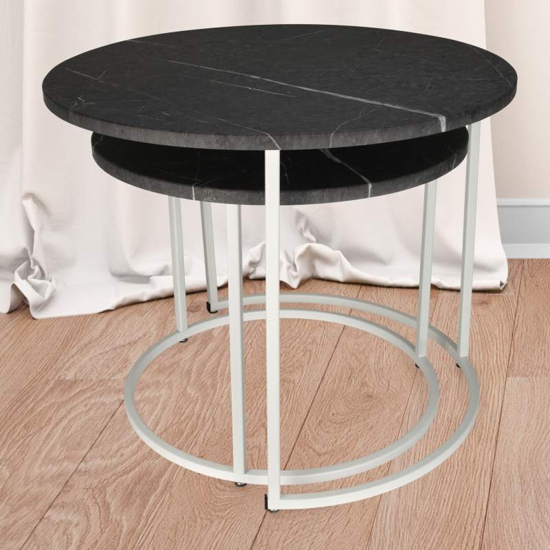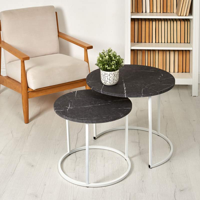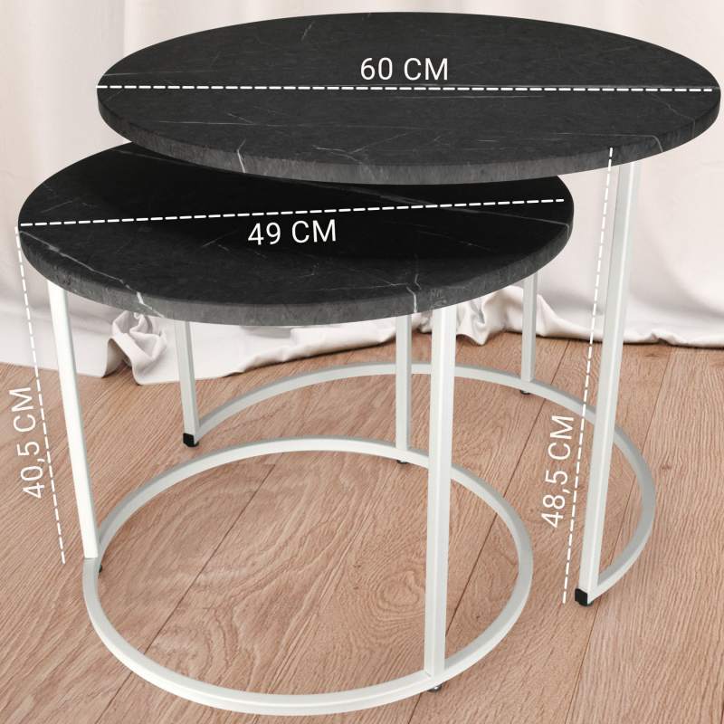 Журнальные столики МеталлАрт М001 – это идеальное решение для тех, кто ценит стиль и функциональность. Два круглых столика разных размеров легко адаптируются к вашим потребностям: маленький столик можно быстро убрать под большой. Столешницы выполнены из прочного МДФ и покрыты защитной пленкой ПВХ, что обеспечивает стойкость к горячим блюдам и напиткам. Металлический каркас обеспечивает надежность и долговечность, а накладки из искусственного фетра защитят напольное покрытие от царапин.