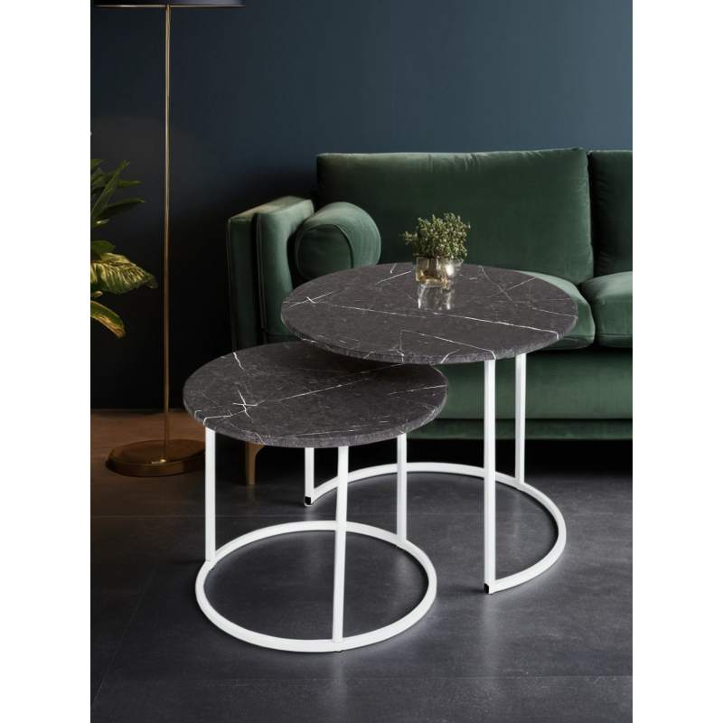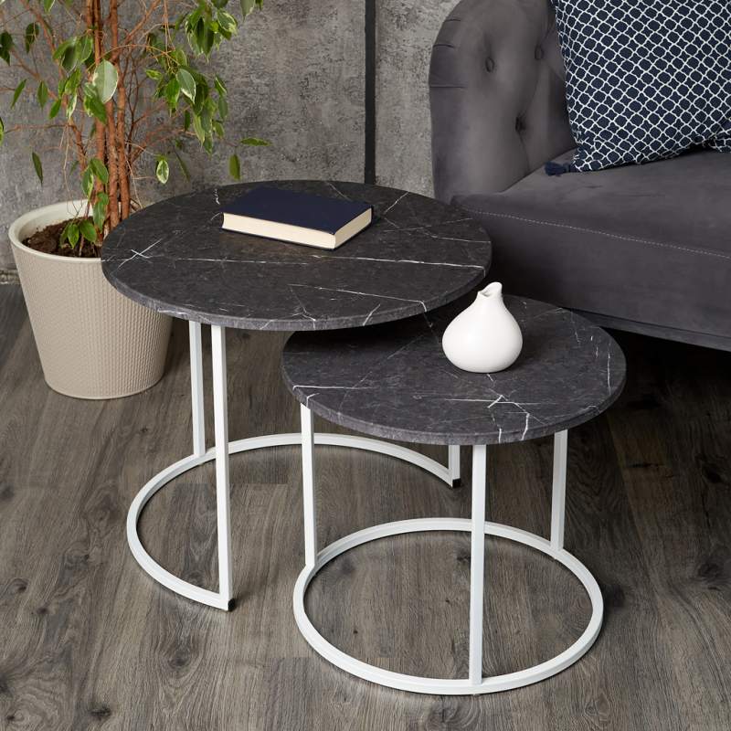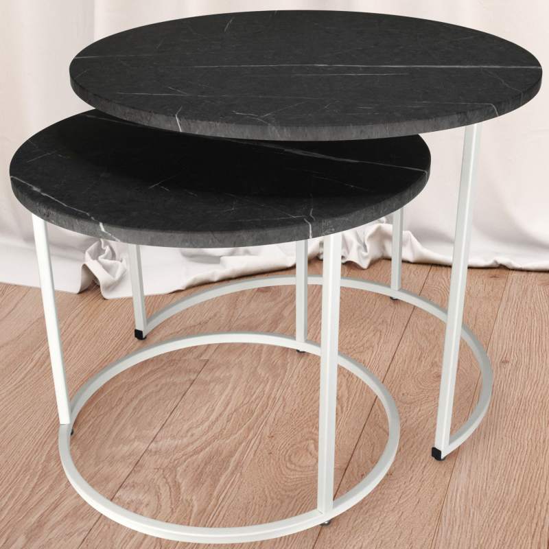 Стол журнальный МеталлАрт М001 черный мрамор/белый