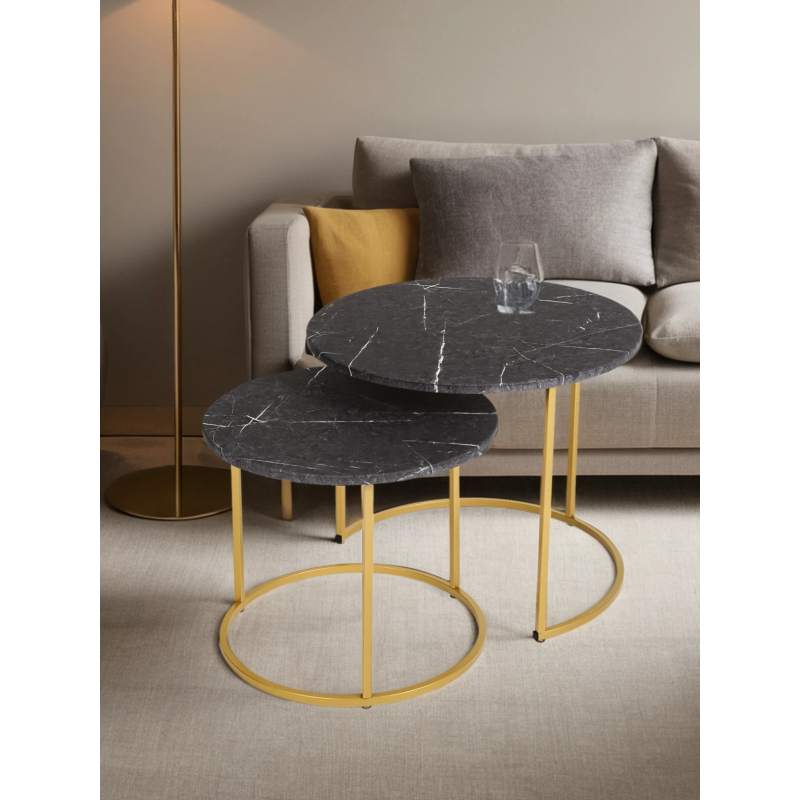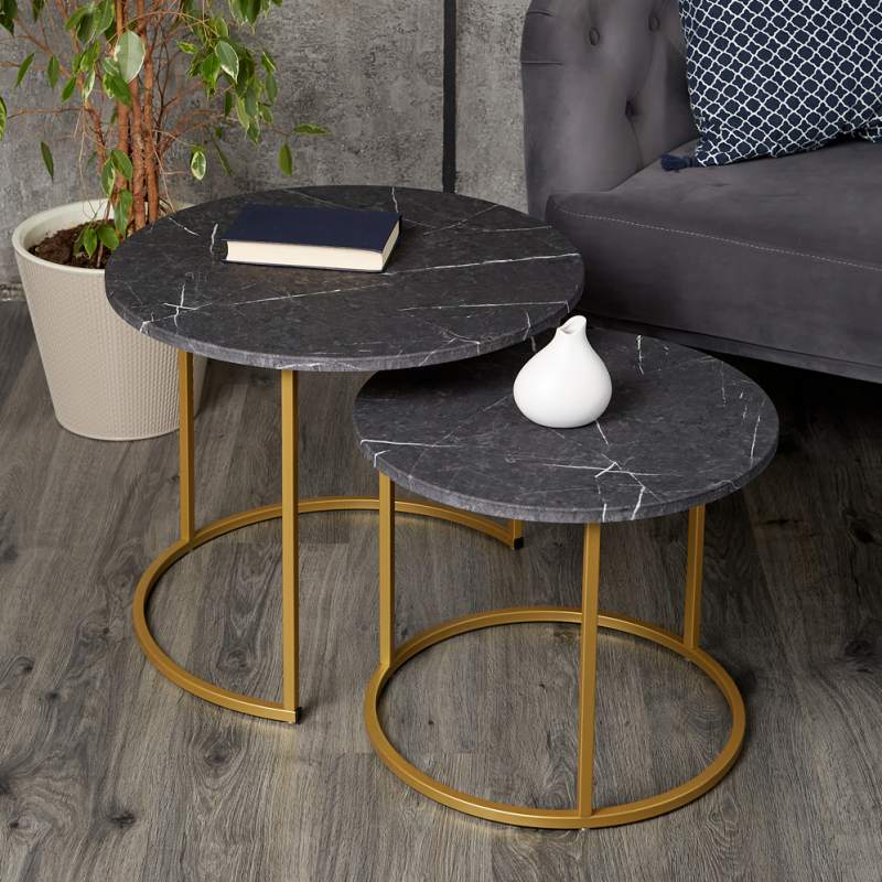 Стол журнальный МеталлАрт М001 черный мрамор/золото