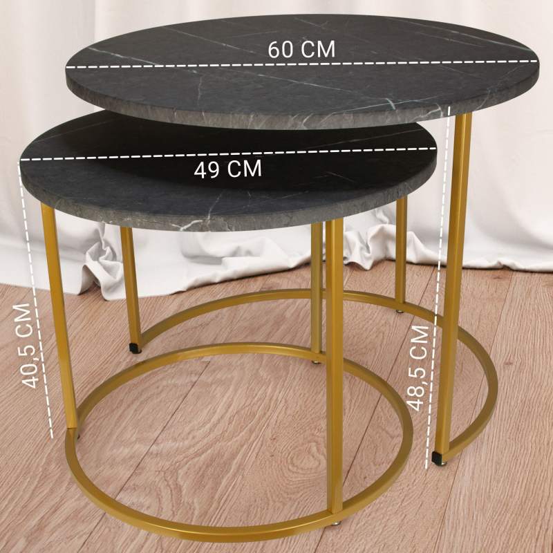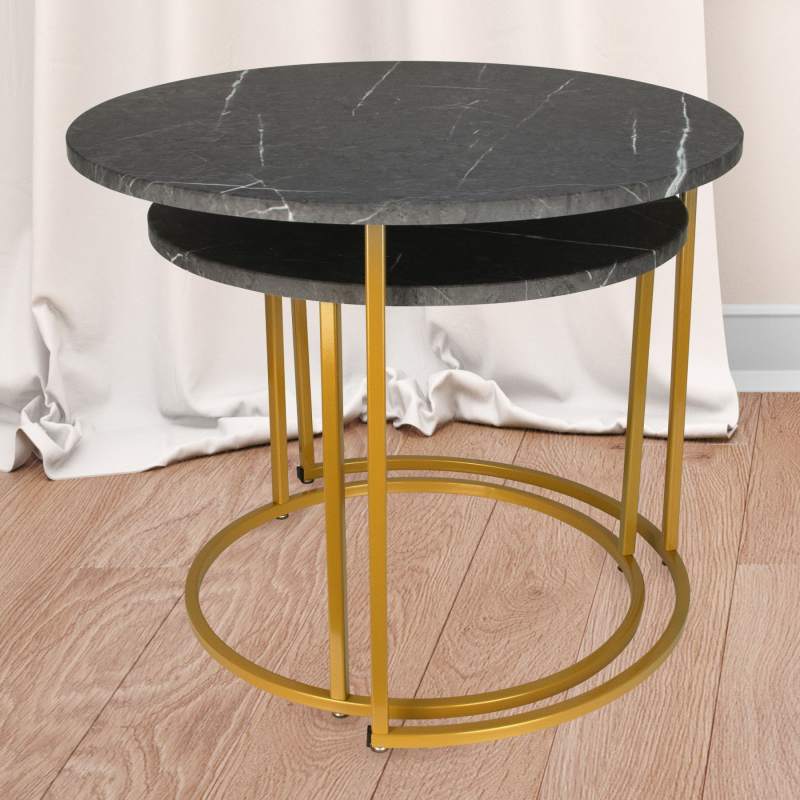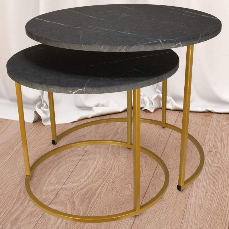 Журнальные столики МеталлАрт М001 – это идеальное решение для тех, кто ценит стиль и функциональность. Два круглых столика разных размеров легко адаптируются к вашим потребностям: маленький столик можно быстро убрать под большой. Столешницы выполнены из прочного МДФ и покрыты защитной пленкой ПВХ, что обеспечивает стойкость к горячим блюдам и напиткам. Металлический каркас обеспечивает надежность и долговечность, а накладки из искусственного фетра защитят напольное покрытие от царапин.