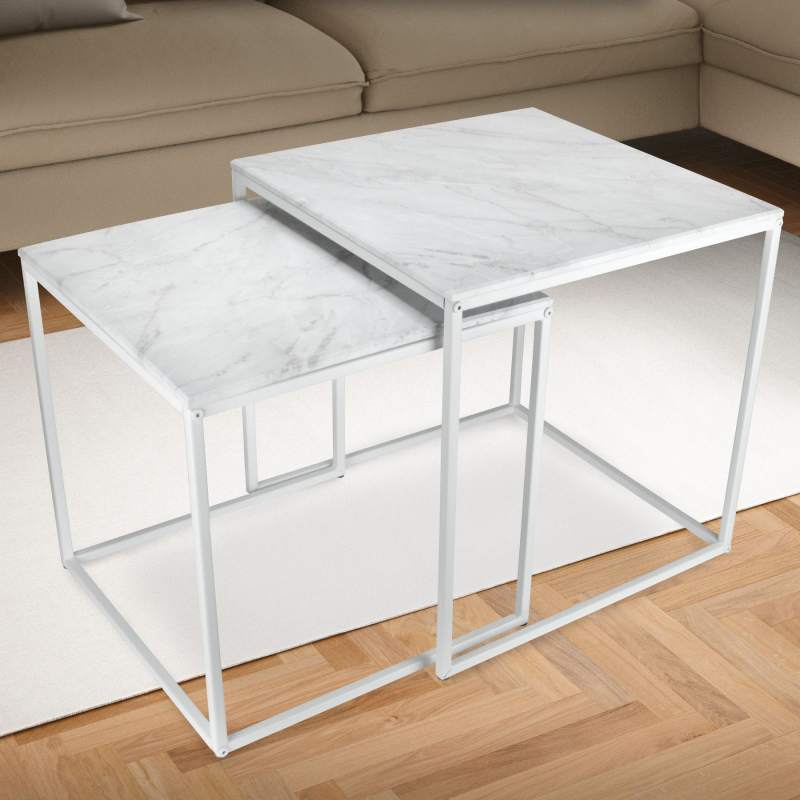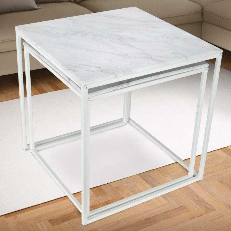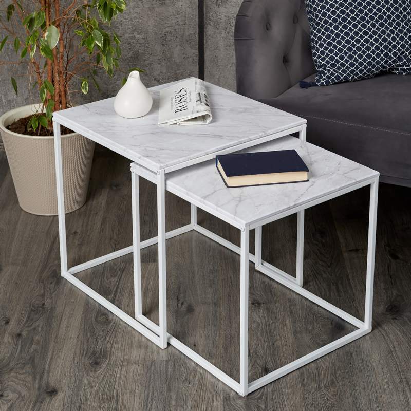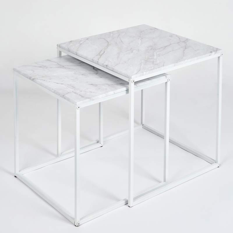Стол журнальный МеталлАрт М002 белый мрамор/белый