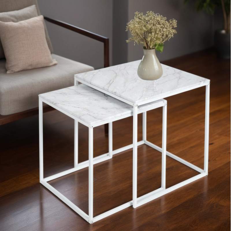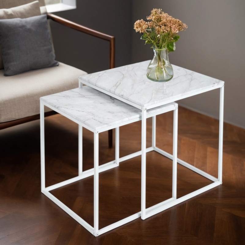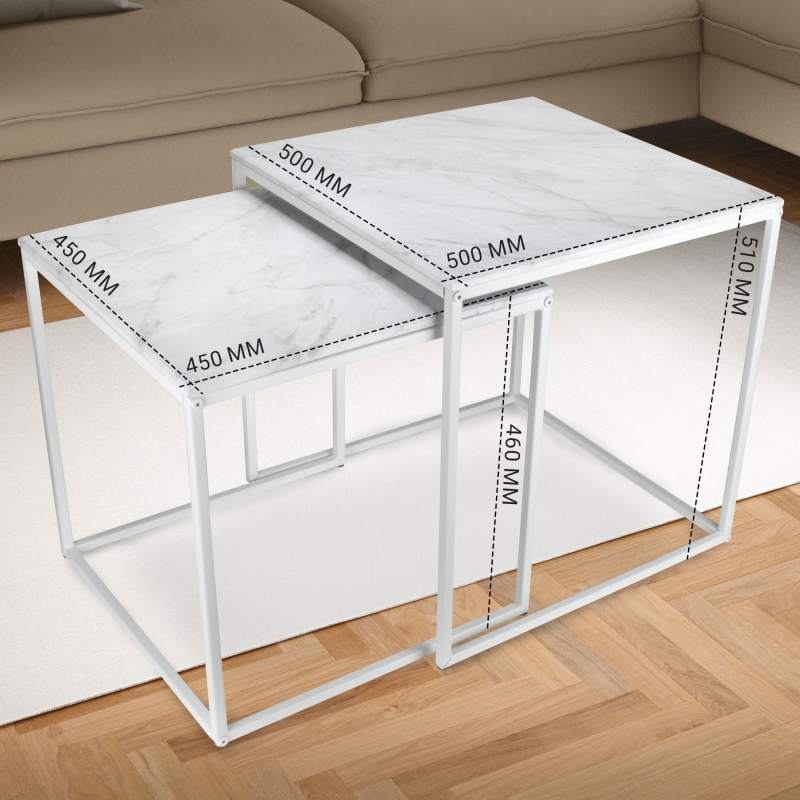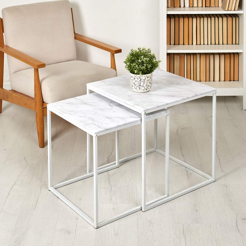 Журнальные столики МеталлАрт М002 — это комплект из двух прямоугольных моделей, которые идеально впишутся в ваш интерьер. Маленький столик легко убрать под большой, что обеспечивает компактное хранение и удобство использования. Столешницы из МДФ обтянуты пленкой ПВХ, что делает их устойчивыми к высоким температурам и защищает от возможных повреждений. Металлический каркас, устойчивый к царапинам и ударам, гарантирует долговечность и надежность. Кромка столешницы идет вровень с каркасом, что придаёт столикам современный и аккуратный вид.