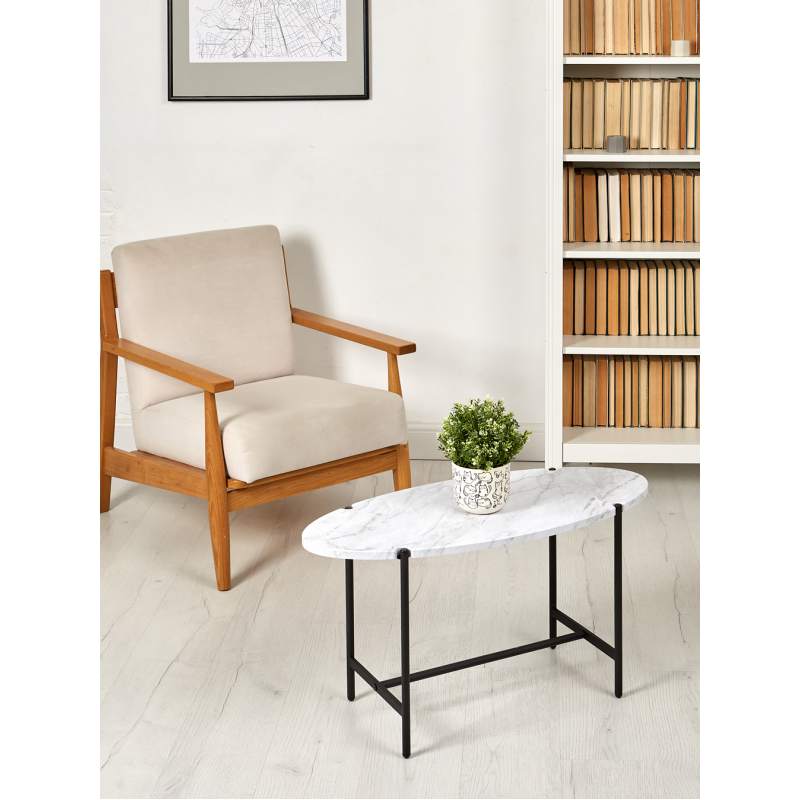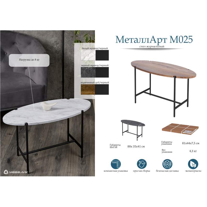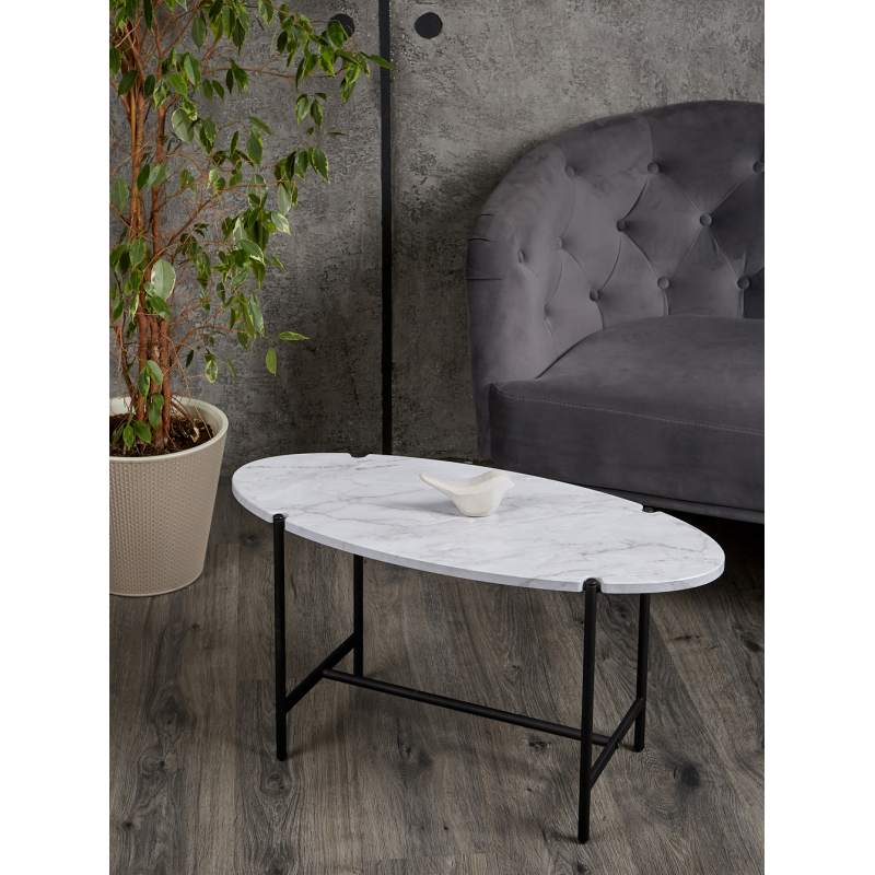 Стол журнальный МеталлАрт М025 белый мрамор/черный
