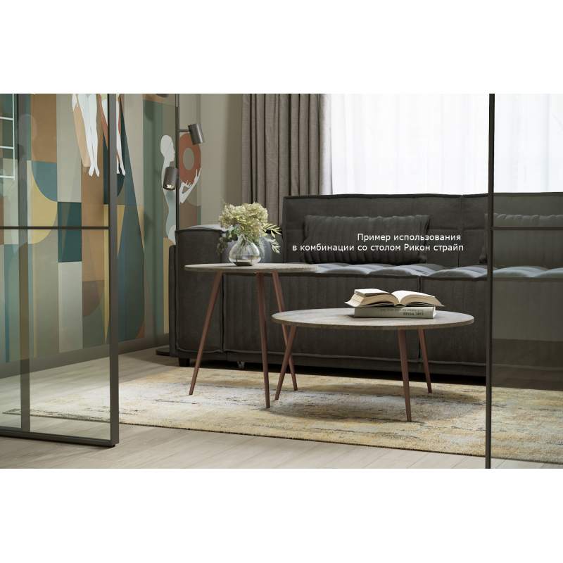 Журнальный столик – функциональный предмет интерьера и изысканный элемент декора дома, который способен украсить помещение, выполняя при этом прежде всего эстетическую функцию. Журнальный стол "Рикон" приковывает внимание прежде всего своей оригинальной цветовой гаммой. Опоры изготовлены из массива. Благодаря габаритным размерам 800*800*360 мм стол "Рикон" можно использовать в комбинации с другим столом в этом стиле "Рикон страйп". Такой дизайнерский прием является уместным, если позволяет пространство помещения.___