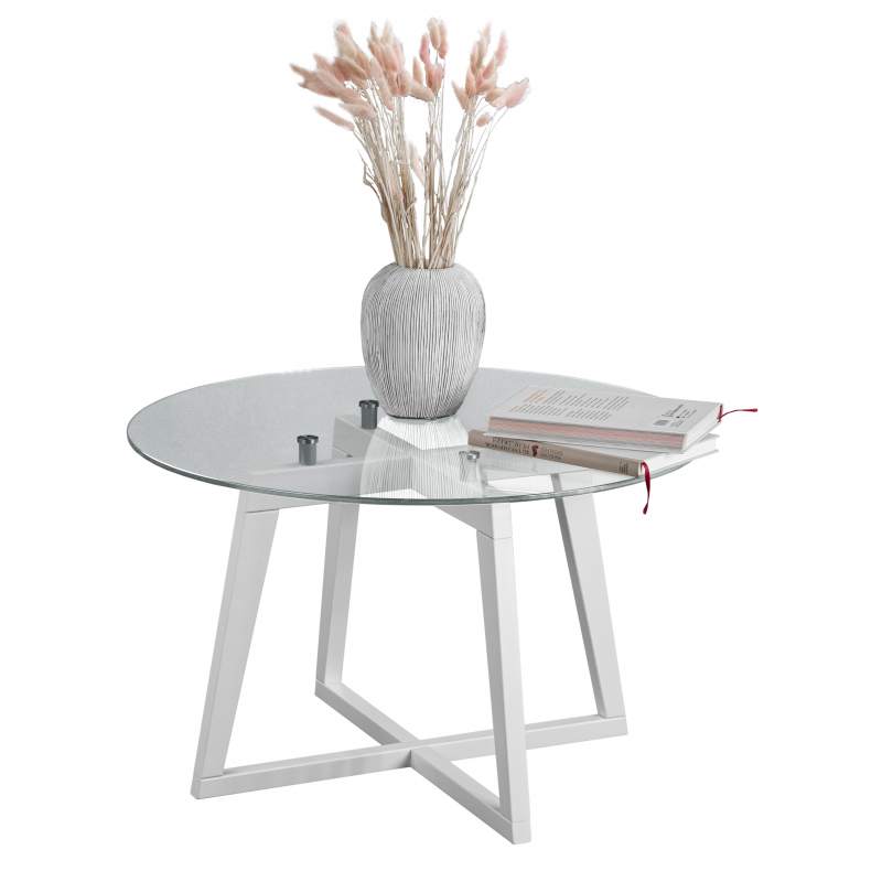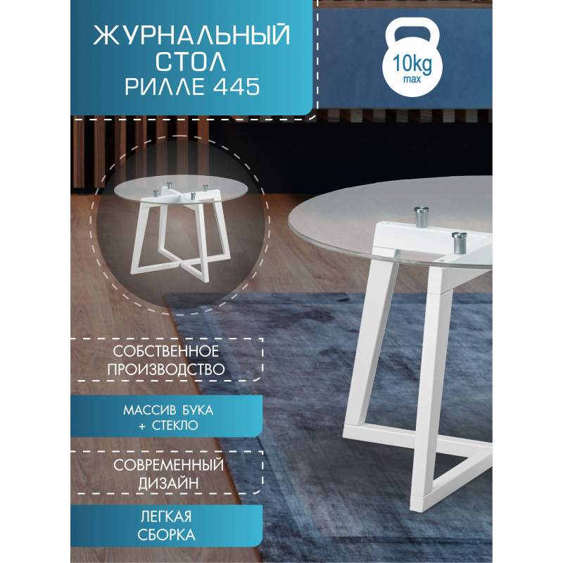 Стол журнальный Рилле 445 белый/стекло прозрачное (круг)