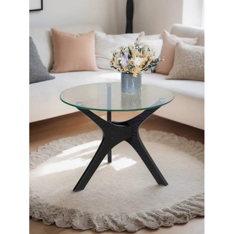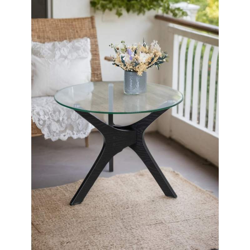 Стол журнальный Рилле 446 черный/стекло прозрачное