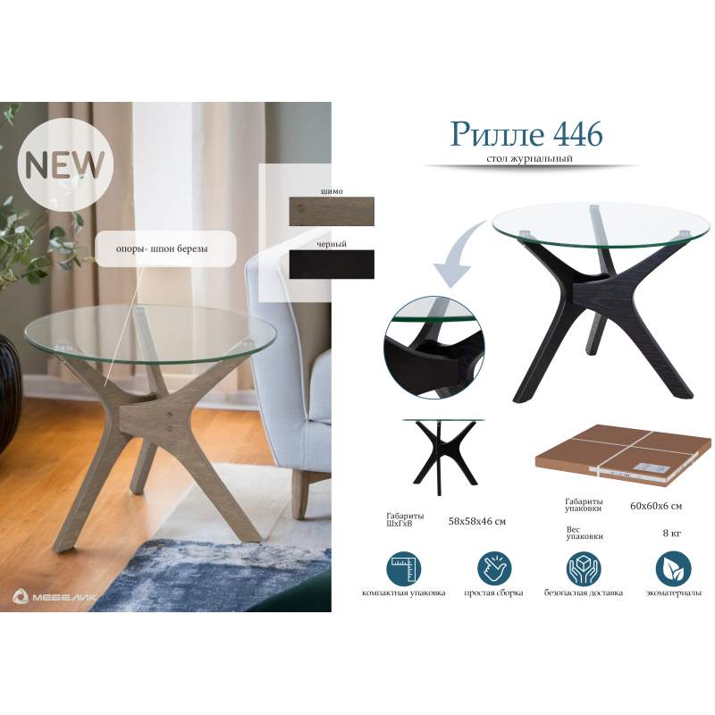 Рилле 446 – это стильный и компактный предмет мебели, который добавляет уют в дом. Его элегантная круглая столешница из прочного стекла придает любому пространству легкость и воздушность. Главная особенность модели - уникальные опоры из шпона березы в форме бумерангов, создающие динамичную композицию. Столик можно использовать как журнальный, прикроватный или приставной, он отлично впишется в любую комнату: гостиную, спальню или офис. Украсьте его свежими цветами или свечами для создания особого шарма.
