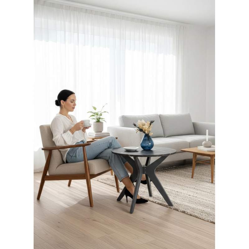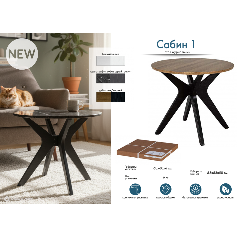 Сабин 1 — это эстетичное дополнение вашего интерьера. Журнальный стол сочетает в себе трендовые элементы: стильную геометрию и популярный минимализм. Четыре фигурные опоры из шпона берёзы обеспечивают устойчивость конструкции. Стол обладает оптимальными размерами — столешница из МДФ шириной в 580мм позволит разместить всё необходимое под рукой. Вес стола всего 6кг, что делает его крайне мобильным. Для вашего идеального интерьерного решения на выбор предоставлены три стильные расцветки.