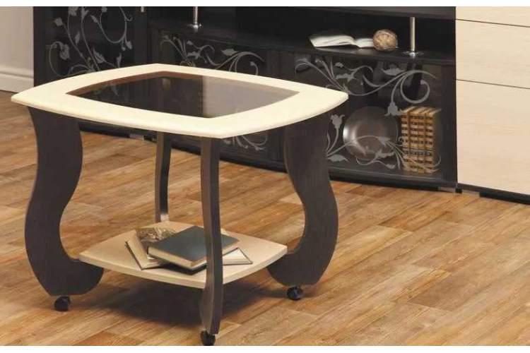 Журнальный стол Сатурн М01 оснащен колесными опорами, что делает стол легко подвижным.