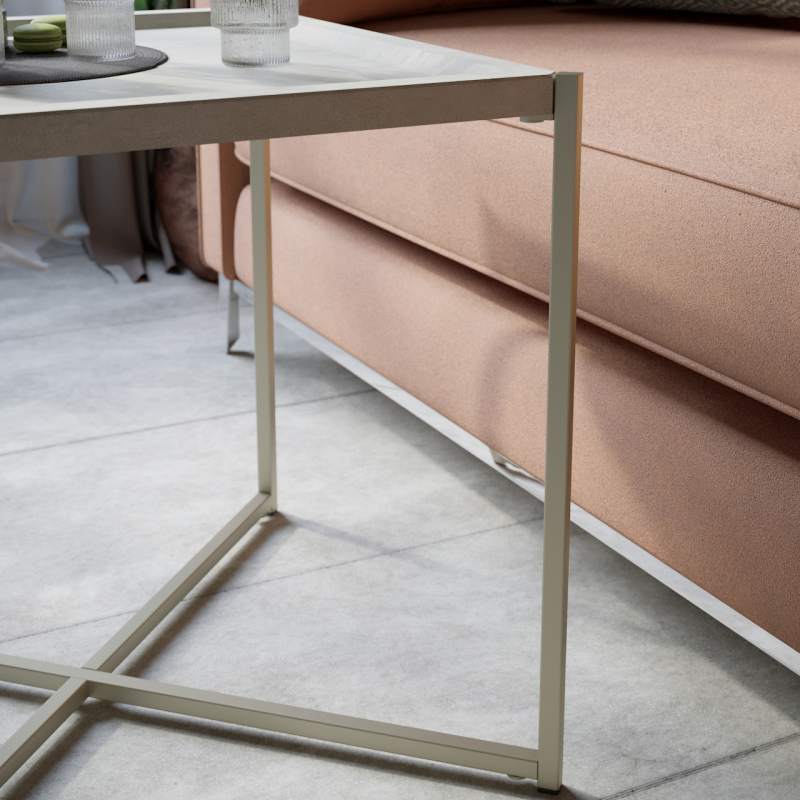 Журнальный столик «Стефан» в стиле лофт станет удачным решением для современного интерьера. Квадратная, слегка вогнутая столешница с оригинальным бортиком изготовлена из МДФ в нескольких цветовых решениях, лаконичный контраст которым придает однотонный каркас в цвете титан или черный матовый.