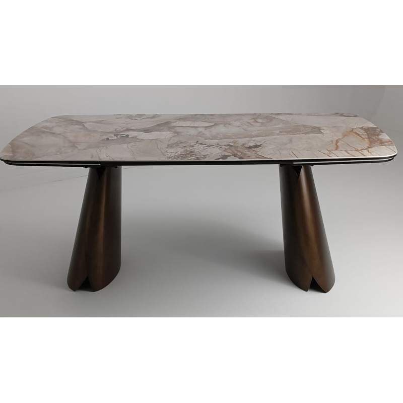 Стол IMBERT 180 GLOSS PATAGONIA, керамика на стекле/ брашированный каркас, цвет медный, ®DISAUR