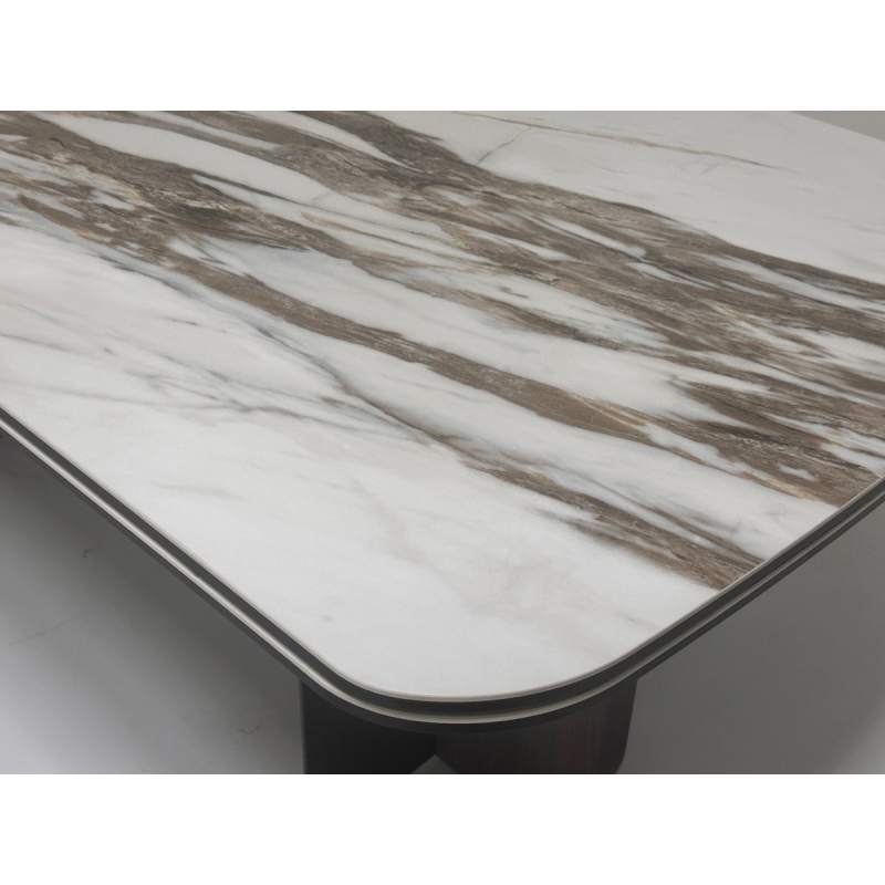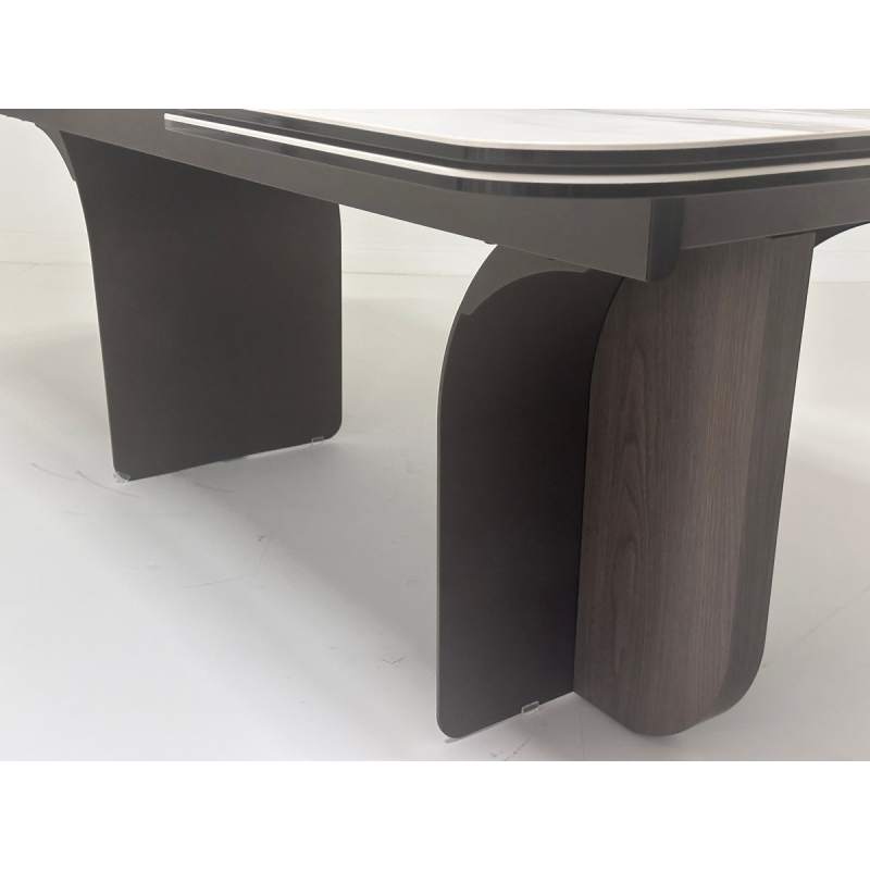 Стол INGERMAN 200 KARAKATA BROWN, керамика на стекле / Темно-серый металл+ шпон, каркас, ®DISAUR