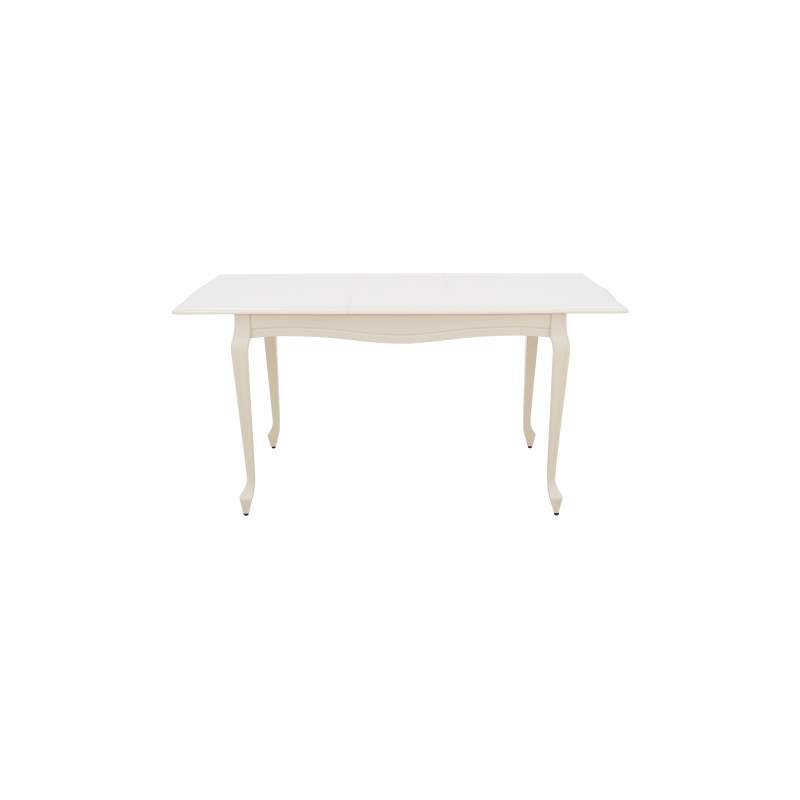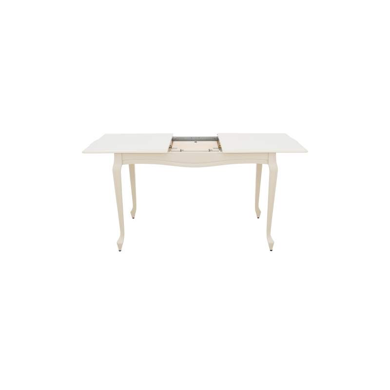 Обеденный раздвижной стол из массива березы со шпонированной поверхность столешницы. Синхронный механизм трансформации. Изящная форма ножек и фигурный царговый пояс.