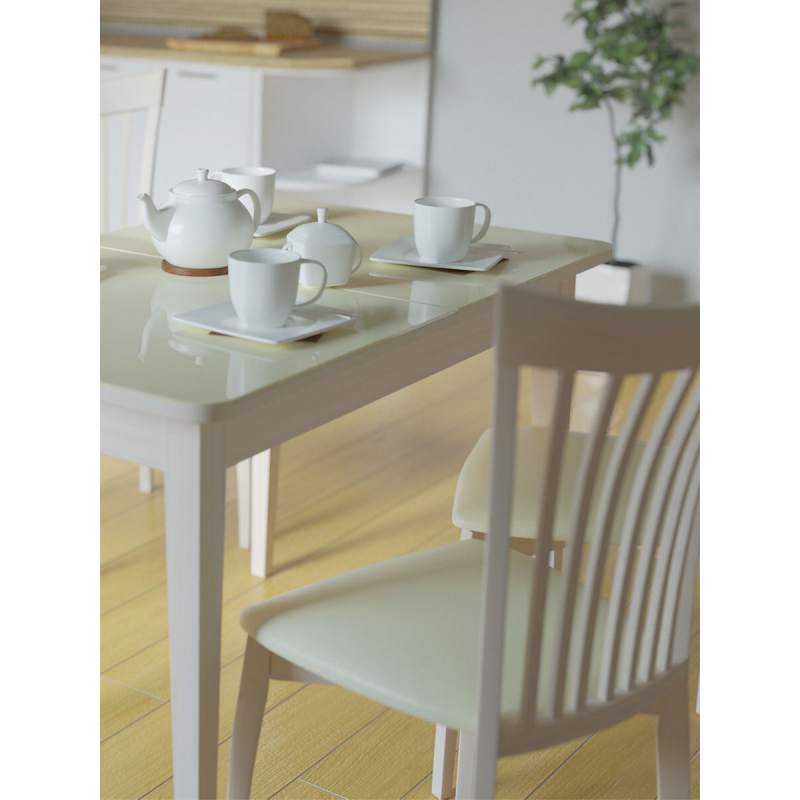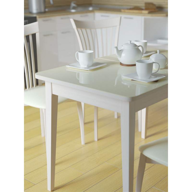 Стол имеет компактные размеры и рассчитан на 4 человек. Благодаря механизму раздвижения, можно удобно разместить ещё 2 гостей. Стильный дизайн включает белую матовую поверхность и стеклянную вставку ОСНОВНЫЕ ПРЕИМУЩЕСТВА Компактный и многофункциональный стол подходит для небольших кухонь и гостиных. Стеклозащитная столешница устойчива к влаге и теплу. Механизм синхронного расширения облегчает трансформацию стола. Материал вставки сохраняет целостность конструкции при раскладывании. Особое укрепление опор обеспечивает максимальную стабильность. Столешница премиум-класса Столешница выполнена из оптимального материала - стекла Optiwhite, отличающегося высокой ценой при безупречном качестве. Оно обеспечивает чистоту цвета без зелёных оттенков. Надежное крепление осуществляется на подложку из ЛДСП посредством герметизации всей площади поверхности. Высокая надежность материалов Стол устойчив благодаря массивным ножкам из бука, угловым стяжкам и двум шпилькам на каждой опоре. Регулировочные винты добавляют стабильности на неровных поверхностях Цвет белый/стекло белое Гарантия 24 месяца.