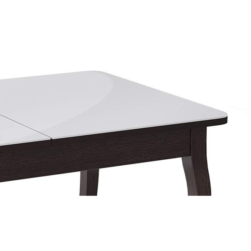 Стол KENNER 1100С цвет венге, столешница - стекло белое, сатин. Стильные, дизайнерские столы для дома. Фабрика "Кеннер". Гарантия качества. Быстрая доставка по РФ. Самая функциональная форма стола из возможных. Стол можно поставить вплотную к стене по любому краю, царговый пояс позволяет поставить 2 стули шириной до 47см, широкая вставка со стеклом в цвет столешницы поможет вам удобно разместить еще 2 гостей. Цвет венге/стекло белое Гарантия 24 месяца.