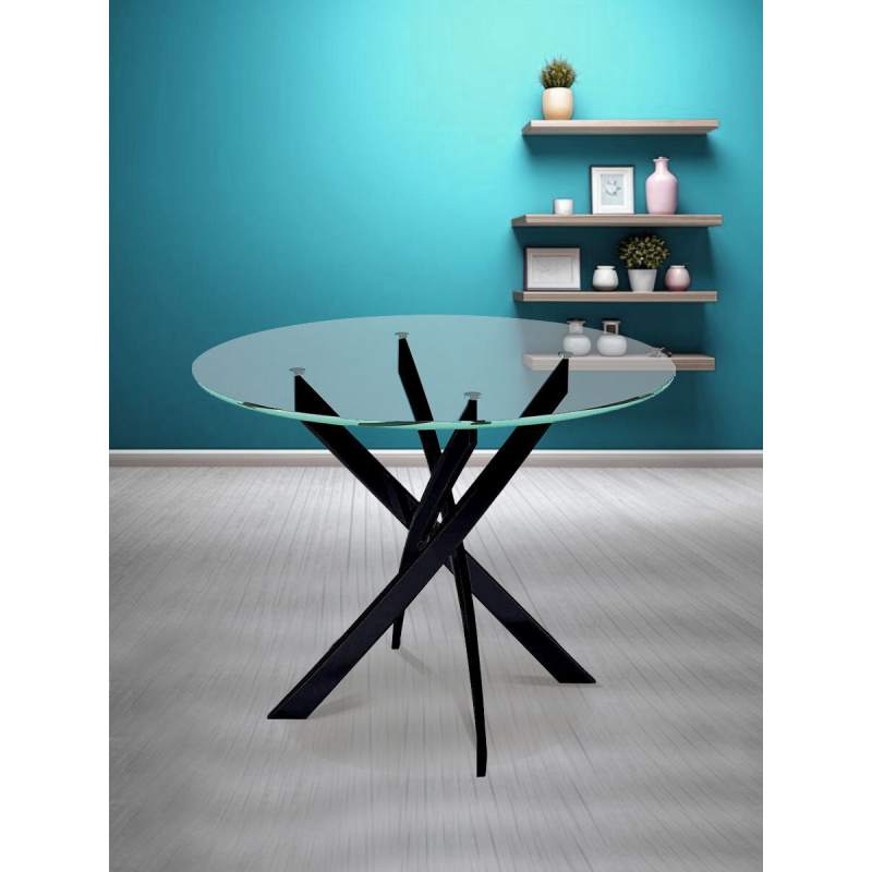 Стол круглый KENNER R1000, ножки - черные, стеклянная столешница. Стильные, дизайнерские столы для дома. Фабрика "Кеннер". Гарантия качества. Быстрая доставка по РФ. Интерьерный стол с толстой столешницей и надежным металлическим основанием. Полностью стеклянной столешнице не страшна влага или средства бытовой химии, ее тяжело повредить и разбить Цвет черный/стекло прозрачное Гарантия 24 месяца.