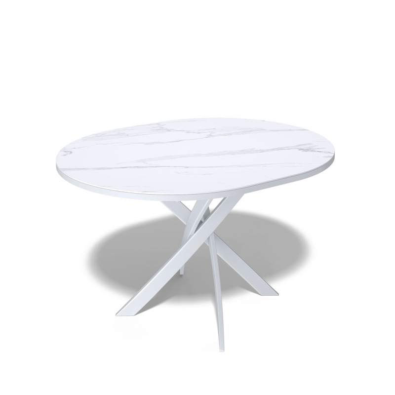 Ключевой особенностью этого стола является керамическая поверхность диаметром 90 см и долговечным, стабильным основанием. Дополняет комплект вставка на 30 см, расширяющая площадь стола.ОСНОВНЫЕ ПРЕИМУЩЕСТВА Стол сконструирован так, чтобы идеально подходить семье из трех-четырех человек. Керамическая столешница устойчива к воздействию различных домашних неприятностей. Благодаря керамической вставке есть возможность увеличивать размер стола при необходимости. Столешница премиум-класса Керамическая продукция толщиной 5,6 мм отличается высокой стойкостью к царапинам, способна выдержать экстремально высокие температуры, обладает водоотталкивающими свойствами и устойчивостью к воздействию бытовой химии, а также сохраняет свой первоначальный цвет на протяжении всего срока эксплуатации. Высокая надежность материалов Центральное основание спроектировано так, чтобы не создавать помех при посадке. Столешница надежно закреплена и обеспечивает стабильность конструкции. Цвет белый/керамика мрамор белый Гарантия 24 месяца.