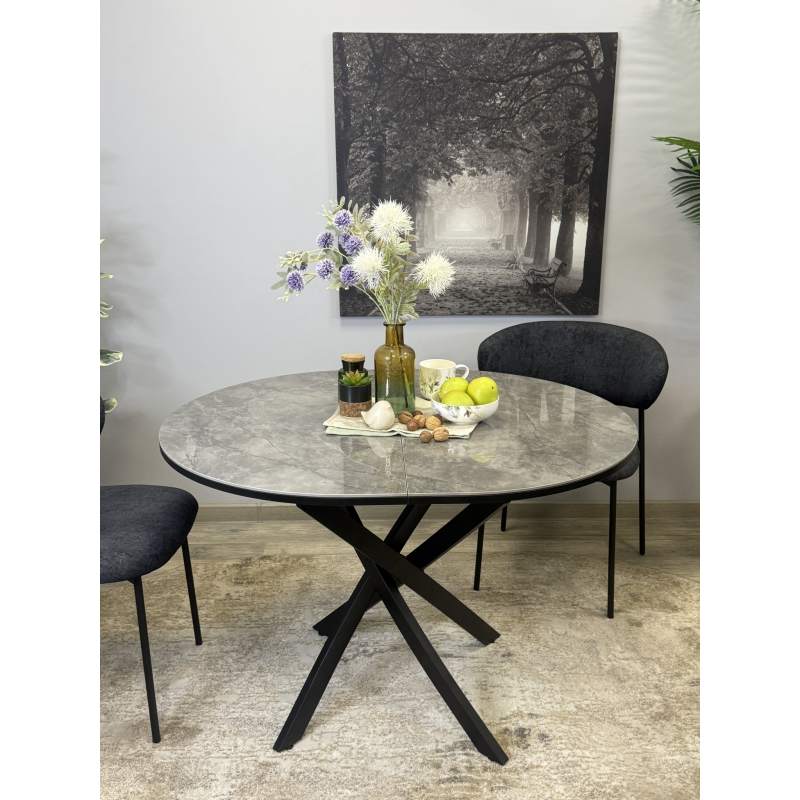 Ключевой особенностью этого стола является керамическая поверхность диаметром 100 см и долговечным, стабильным основанием. Дополняет комплект вставка на 30 см, расширяющая площадь стола.ОСНОВНЫЕ ПРЕИМУЩЕСТВА Стол сконструирован так, чтобы идеально подходить семье из трех-четырех человек. Керамическая столешница устойчива к воздействию различных домашних неприятностей. Благодаря керамической вставке есть возможность увеличивать размер стола при необходимости. Столешница премиум-класса Керамическая продукция толщиной 5,6 мм отличается высокой стойкостью к царапинам, способна выдержать экстремально высокие температуры, обладает водоотталкивающими свойствами и устойчивостью к воздействию бытовой химии, а также сохраняет свой первоначальный цвет на протяжении всего срока эксплуатации. Высокая надежность материалов Центральное основание спроектировано так, чтобы не создавать помех при посадке. Столешница надежно закреплена и обеспечивает стабильность конструкции. Цвет черный/керамика серый глянец Гарантия 24 месяца.