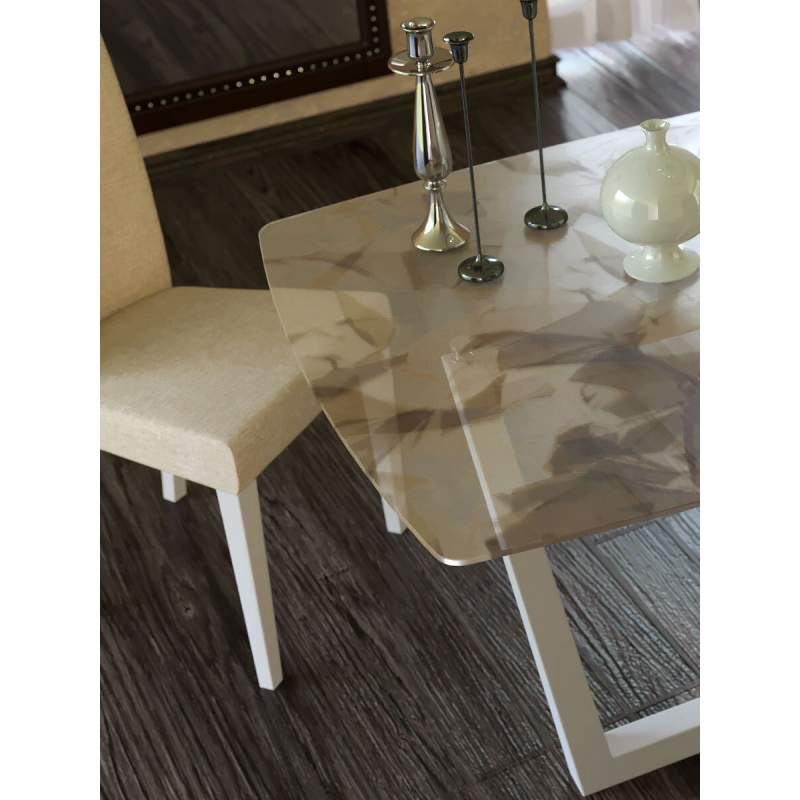 Абсолютно уникальный стол со столешницей из прочного стекла "триплекс" с тканью внутри. Полная реплика итальянского бренда Bontempi. Гарантия, что аналоги отсутствуют. Опоры - массив бука. Столешнице не страшны ни влага ни горячее Цвет Гарантия 24 месяца.