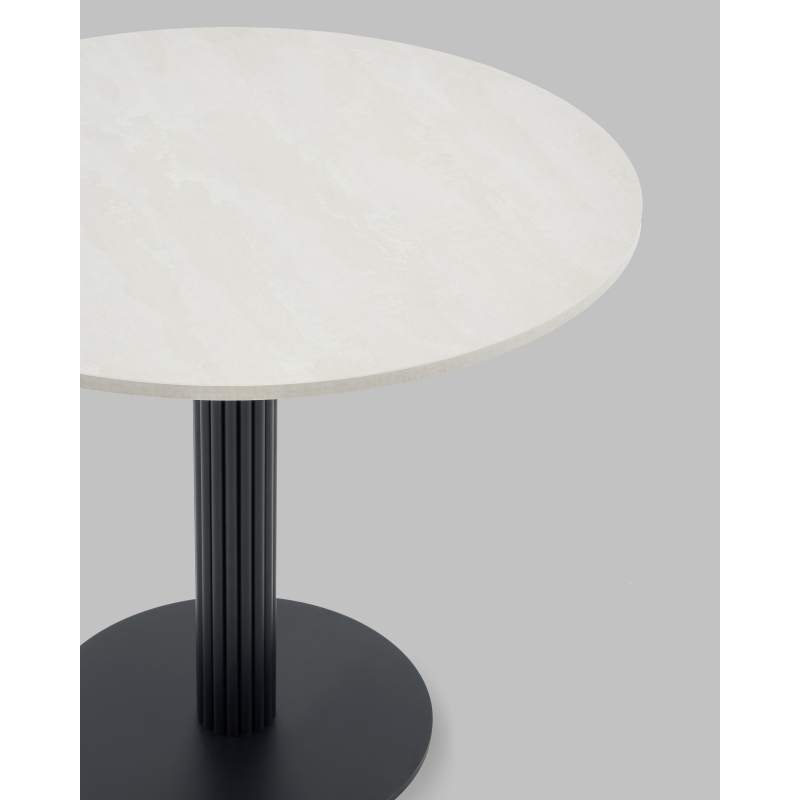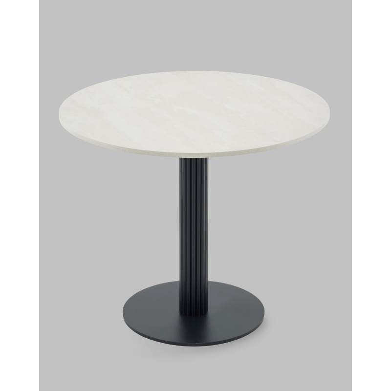 Стол круглый Фризбин D90, столешница МДФ ледяной камень, основание металл черный