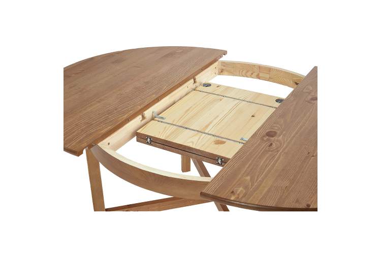 Раздвижной круглый кухонный стол Кантри в стиле Хемнэс Икеа. Это прекрасное решение для кухни или гостиной, которое внесет в комнату волшебную атмосферу комфорта и с легкостью соберет всю семью за обедом или праздничным ужином. Раздвижная конструкция обеденного деревянного стола позволяет комфортно разместить до 8 человек. Обеденный стол изготовлен из массива сосны.