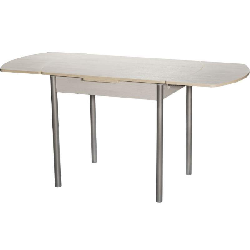 Стол кухонный, раздвижной М2 (ДП1-02-04), с каркасом из металла, столешница - ламинированная плита «Дуб Самерсет». Раскладывается выдвижением боковин. Опоры - металлокаркас (Металлик). Столешница - ЛДСП 18 мм.