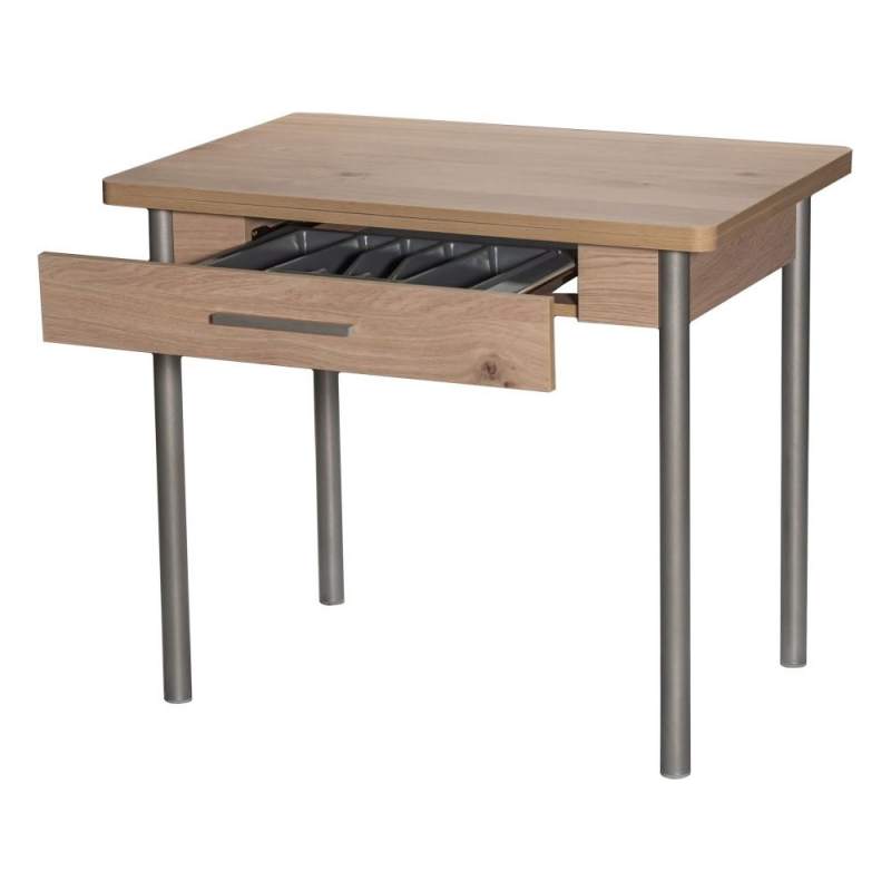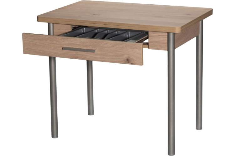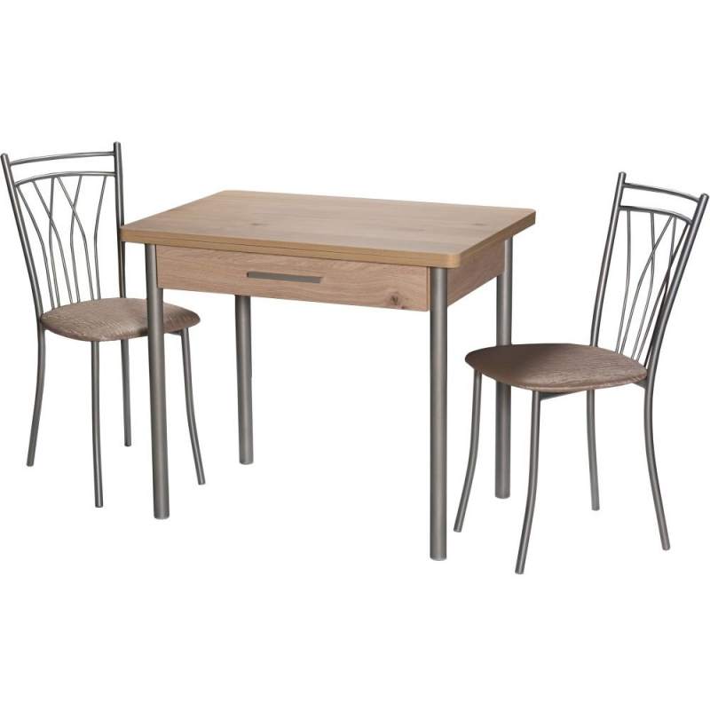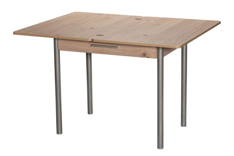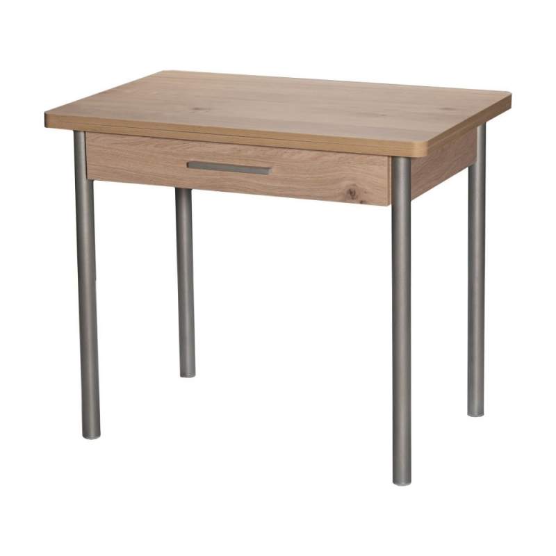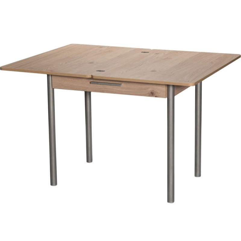 Стол кухонный, раздвижной М20 (ДП1-02-05), с каркасом из металла, столешница - ламинированная плита «Дуб Эврика». Поворотно-раскладной механизм. Опоры - металлокаркас (Металлик). Столешница - ЛДСП 18 мм.