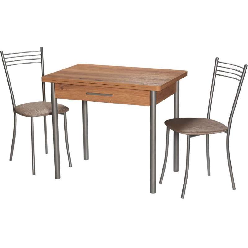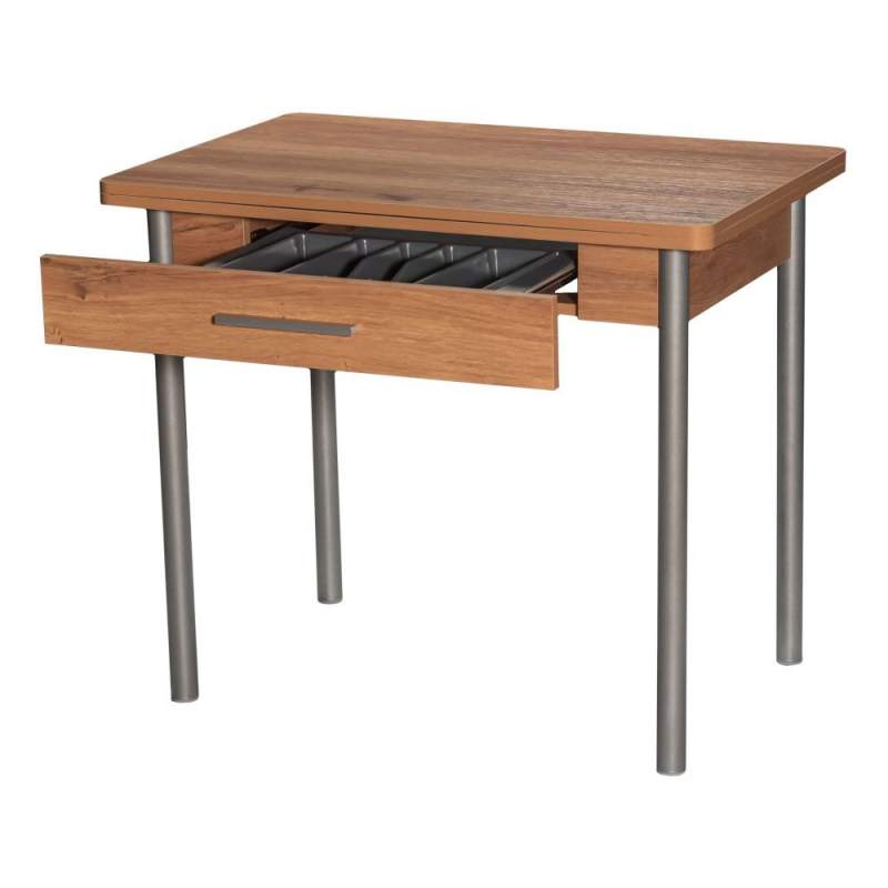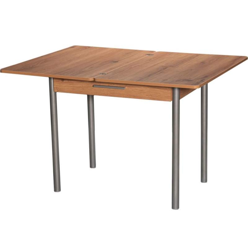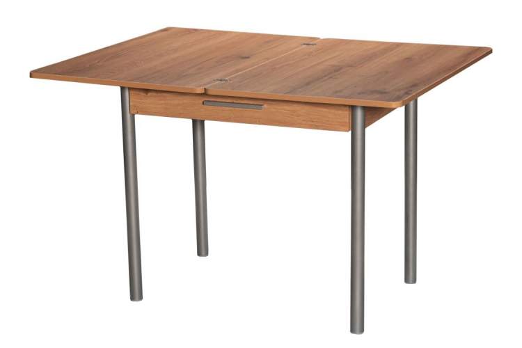Стол кухонный, раздвижной М20 (ДП1-02-05), с каркасом из металла, столешница - ламинированная плита «Дуб горный». Поворотно-раскладной механизм. Опоры - металлокаркас (Металлик). Столешница - ЛДСП 18 мм.
