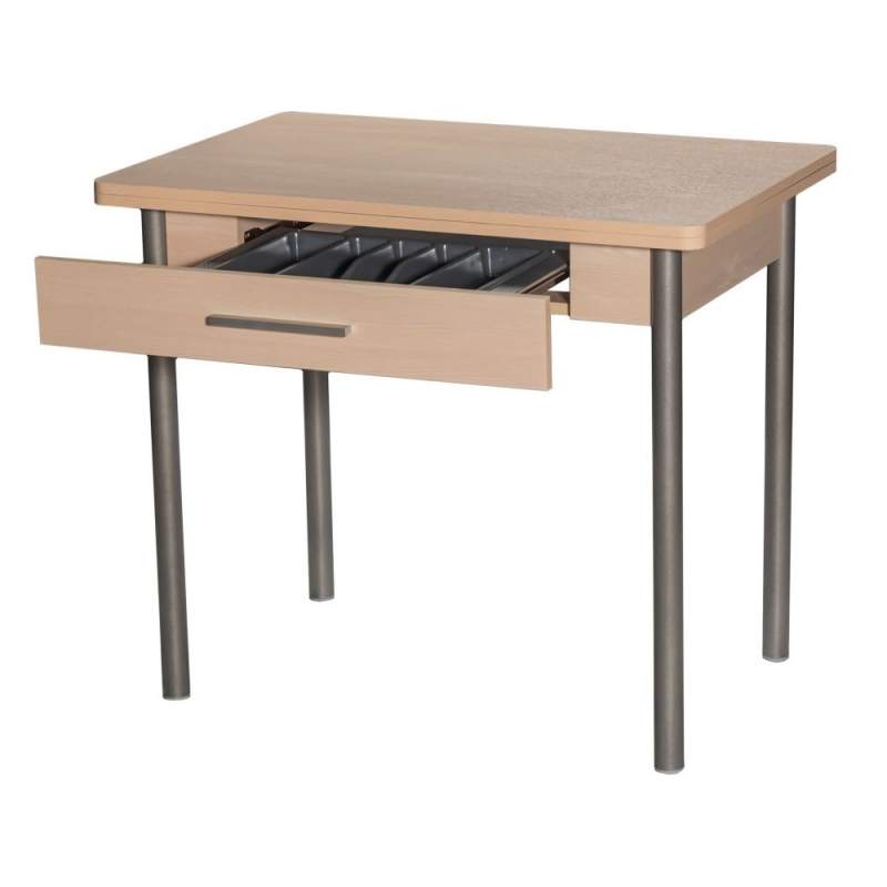Стол кухонный, раздвижной М20 (ДП1-02-05), с каркасом из металла, столешница - ламинированная плита «Дуб светлый». Поворотно-раскладной механизм. Опоры - металлокаркас (Металлик). Столешница - ЛДСП 18 мм.