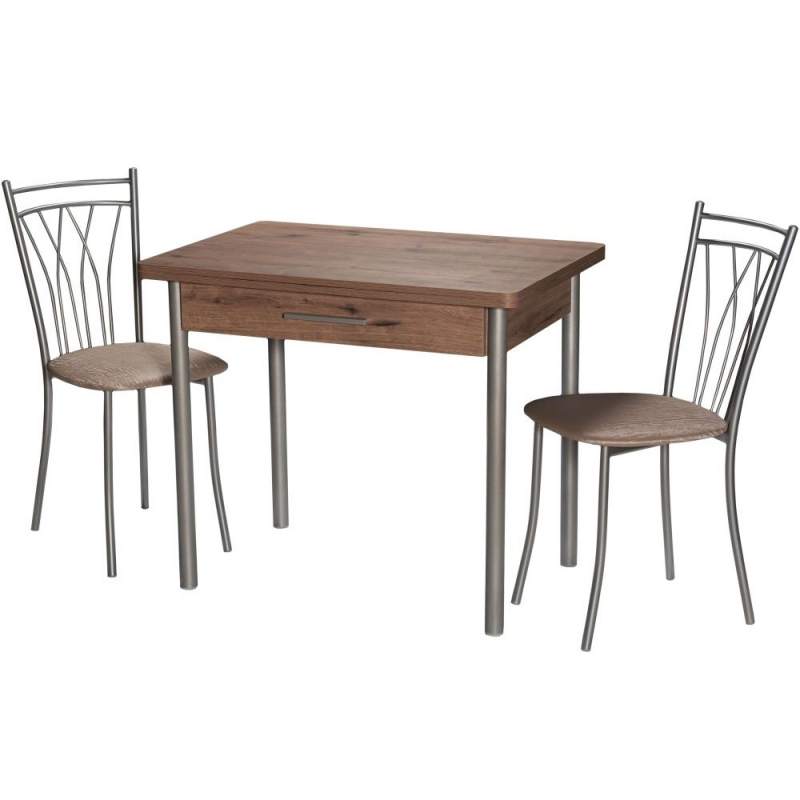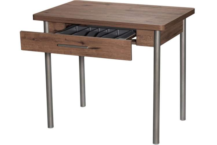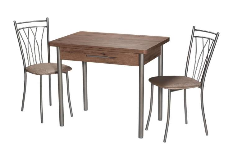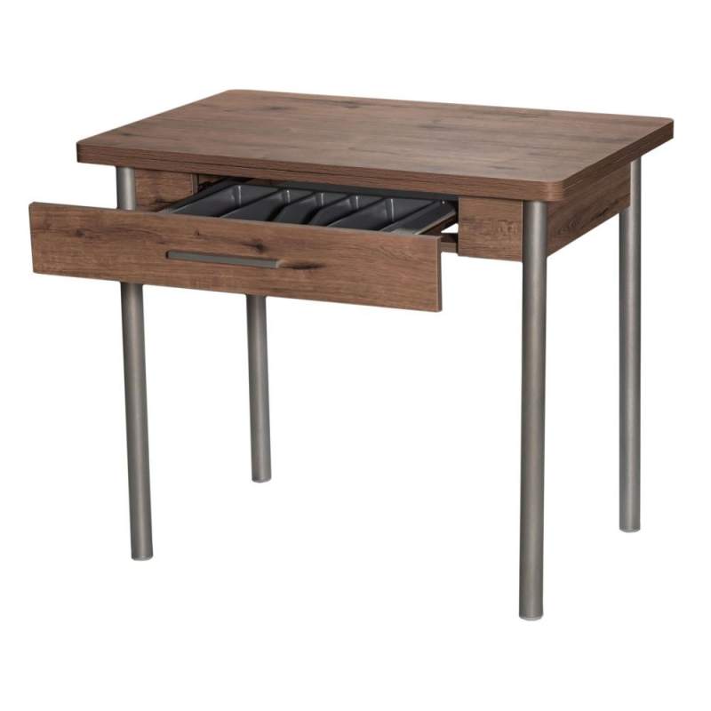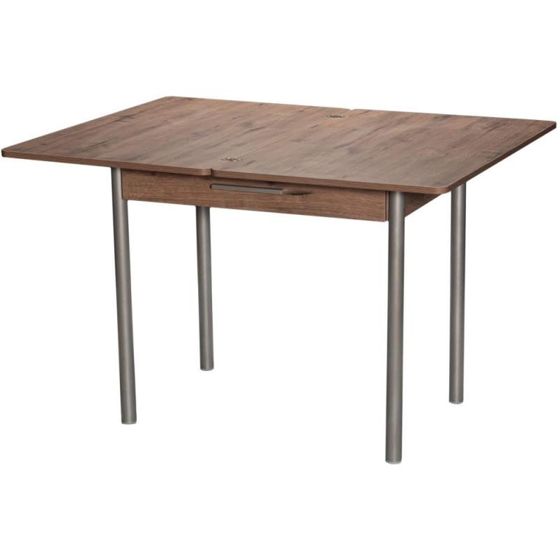 Стол кухонный, раздвижной М20 (ДП1-02-05), с каркасом из металла, столешница - ламинированная плита «Дуб Велингтон». Поворотно-раскладной механизм. Опоры - металлокаркас (Металлик). Столешница - ЛДСП 18 мм.