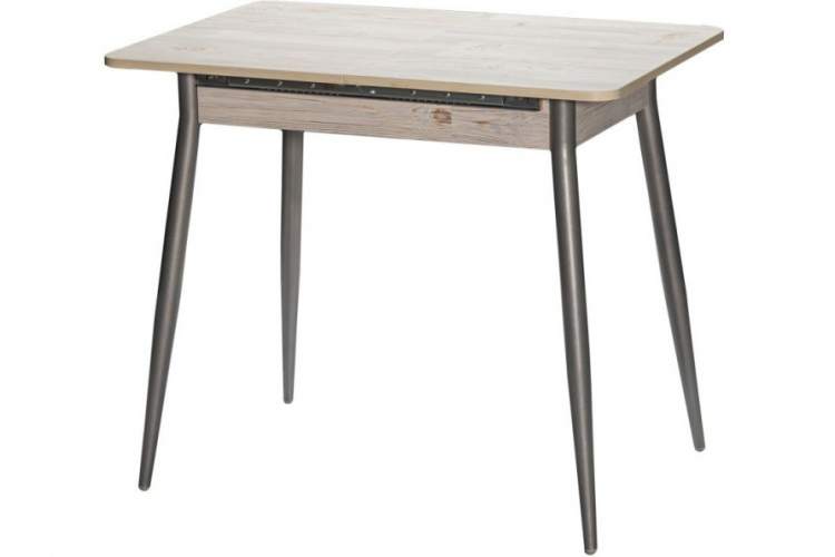 Стол кухонный, раздвижной «Бостон» М46 (ДП1-01-10), с каркасом из металла, столешница - ламинированная плита «Наоми». Раскладывается со вставкой. Опоры прямые с утонением - металлокаркас (Металлик). Столешница - ЛДСП 18 мм.