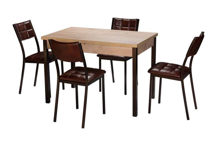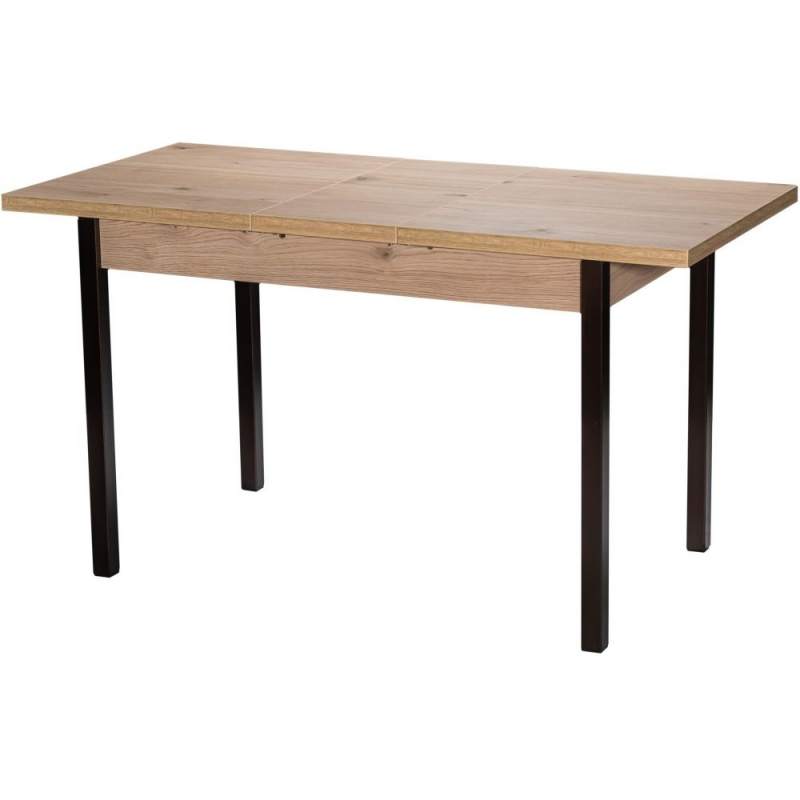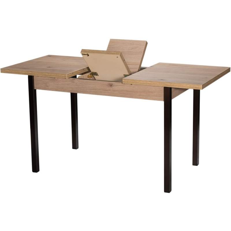 Стол кухонный, раздвижной «Денвер» М65 (ДП1-01-06), с каркасом из ЛДСП, ламинированная плита «Дуб Эврика», опоры квадратные Арабискат. Раскладывается только с одной вставкой. Основа - металлокаркас. Столешница - ЛДСП 32 мм.