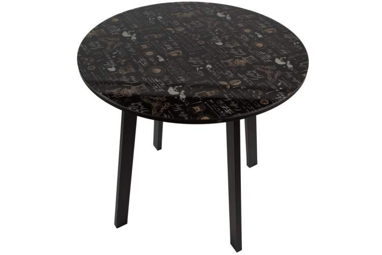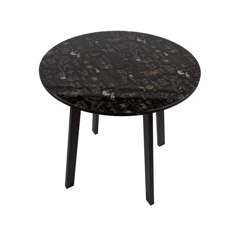 Стол ДП1-01-08 d800 круглый со стеклом М99 «Филд» «Кофе хаус»/«Черный», Ноги для стола (черный матовый). Столешница изготовлена из ЛДСП с каленым стеклом, толщиной 20 мм.