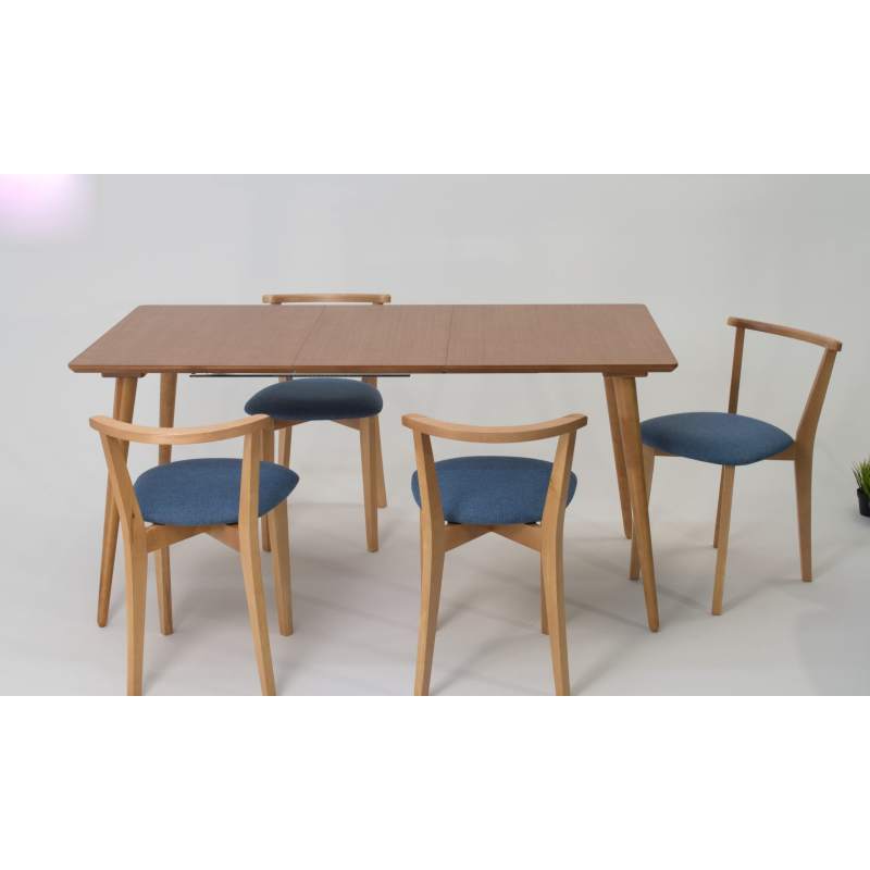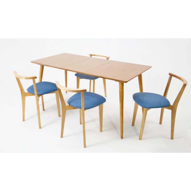 Стол Монте 120 натур со стульями Франк натур рогожка синий