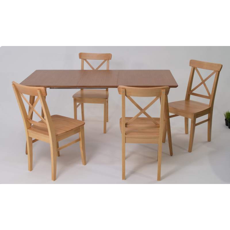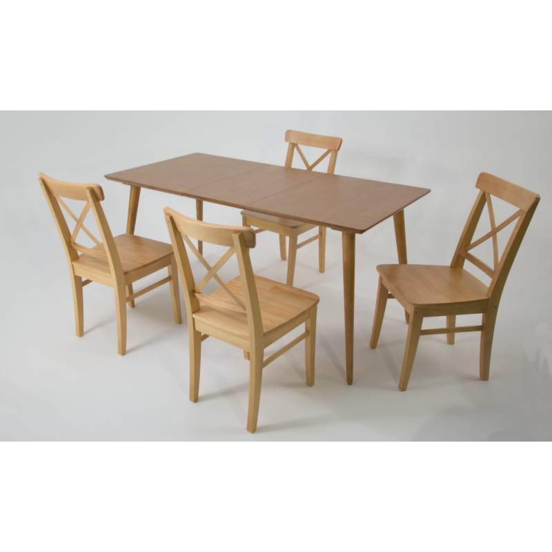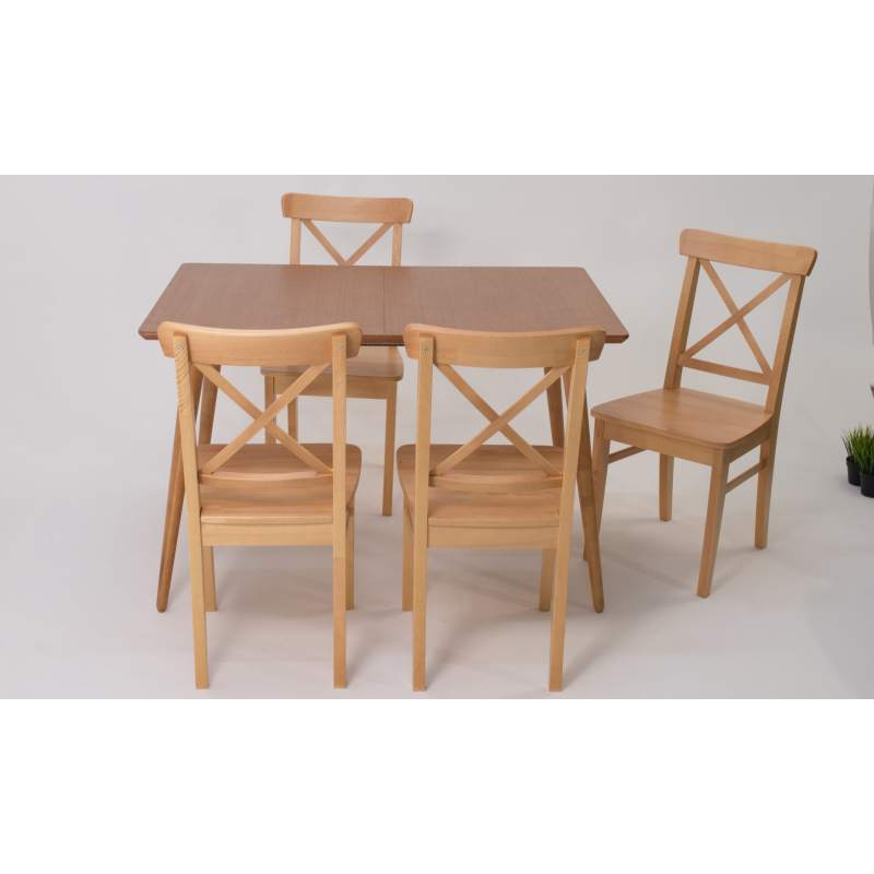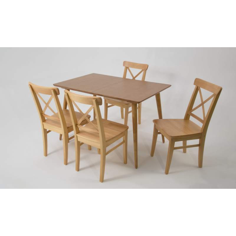 Комплект из деревянного стола Монте на каркасе из натурального дерева и 4 стула Ингольф отлично подойдет к интерьеру, выдержанному в скандинавском стиле. Данный комплект станет центральным элементом в гостиной, столовой зоне, на кухне, позволив создать уютное обеденное место, где смогут собираться члены дружной семьи и их гости.У модели прямоугольная форма столешницы, со скруглением углов. Такое решение исключит риск сколов и обеспечит безопасность, в том числе, детям.Комплект выполнен в красивом цвете - натур. Сочетание изысканного дизайна и высокого качества исполнения - главная особенность комплекта.Столешница выполнена из материалов с великолепными эксплуатационными свойствами - МДФ (Материал создается на основе натуральной древесины. Практичен, надежен, имеет однородную гладкую структуру), шпон.Мебель проста в уходе - для поддержания первозданного вида достаточно использовать простую чуть влажную салфетку по мере необходимости.Состав комплекта: Стол F514136N00 120x80x75 и 4 стула R100743N00 55x43x90