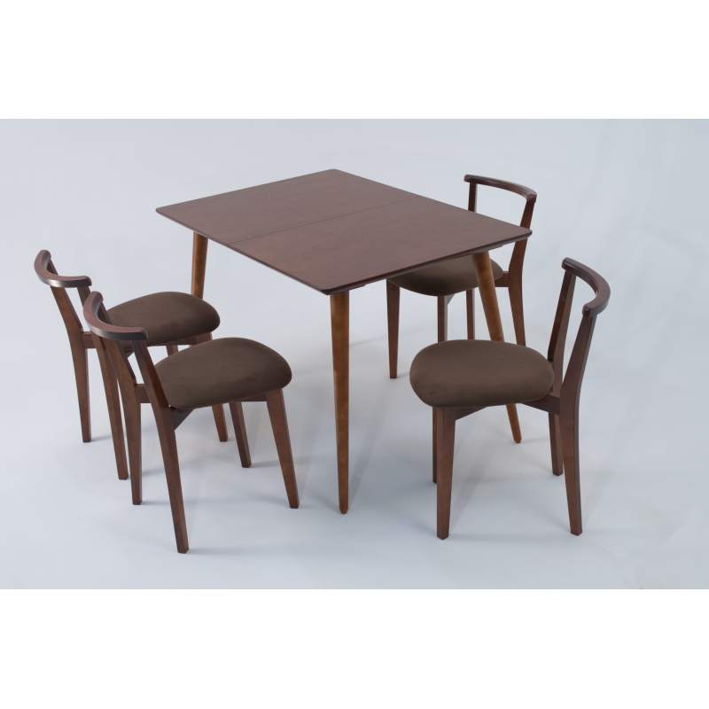 Стол Монте 120 орех со стульями Франк Орех велюр коричневый